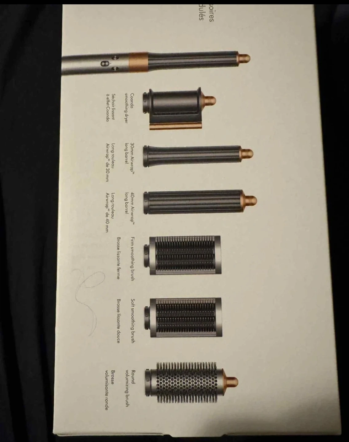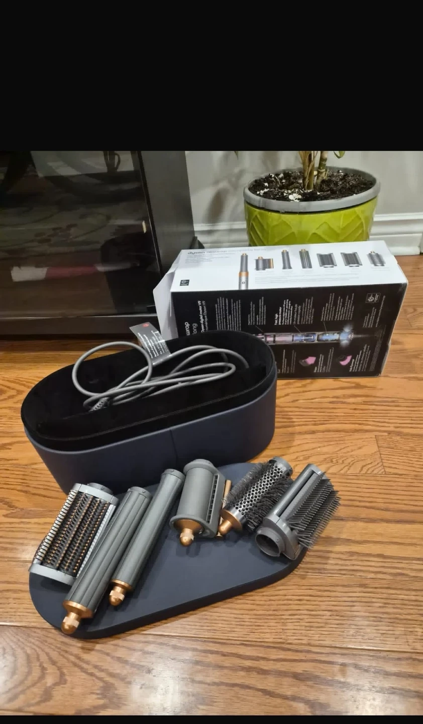 This is the Dyson Airwrap Complete Long, a multi-styler engineered for styling straight and wavy hair. It comes with various attachments for drying, curling, shaping, and smoothing. Dry, curl, shape, and smooth flyaways with no heat damage!