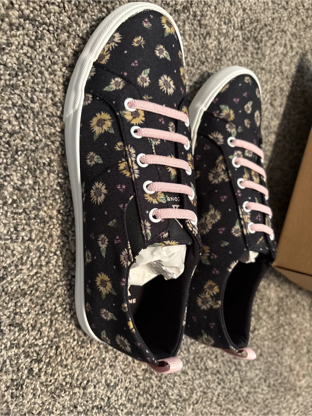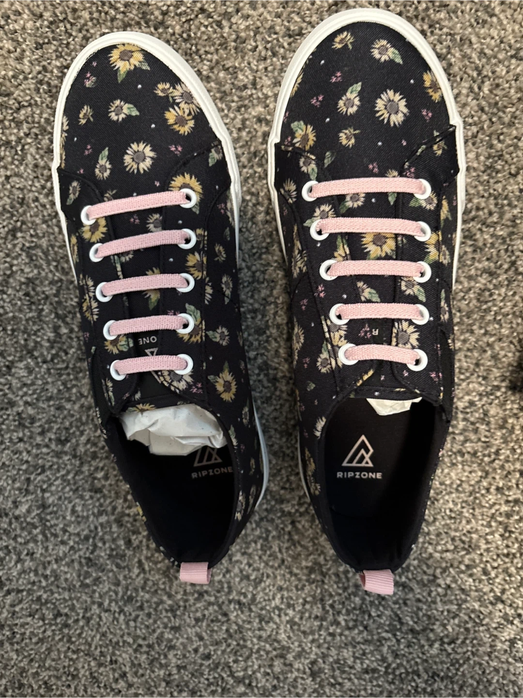 Ripzone Skyler girls' sneakers with a floral print. Features elastic laces and a rubber outsole. Comfortable cushioning for all-day wear. These are great for casual outings! New, size 6 girls