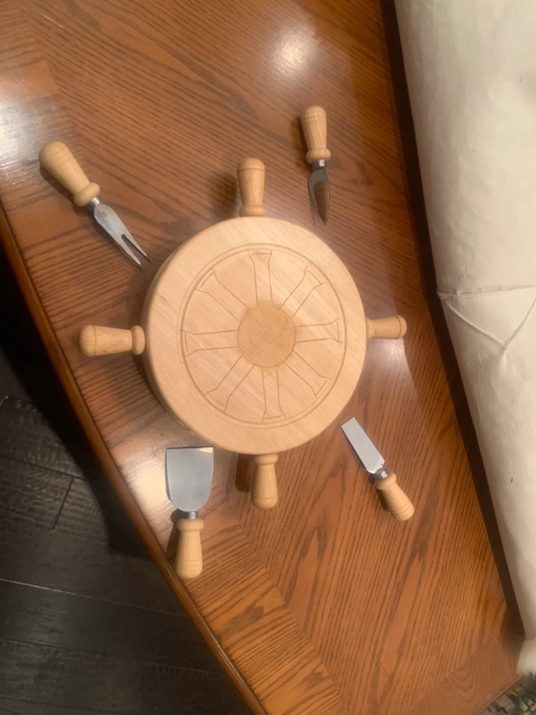 Nautical Wooden Cheese Board with Knives