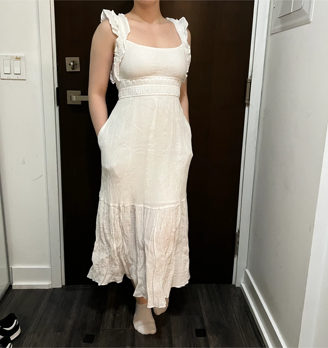 Selling a lovely white summer dress! It's a size small and in great condition. Perfect for warm weather and casual outings. It features a comfortable fit and a stylish design. It's ready for a new wardrobe!