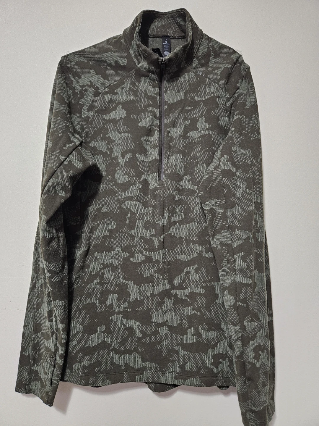 This Lululemon quarter zip pullover comes in a small size. It's a camouflage pattern with a dark green and grey design, perfect for cool weather activities!It's a unisex.Only used for a couple of times.
