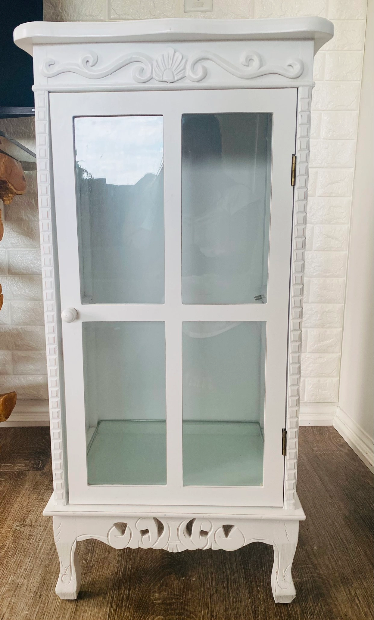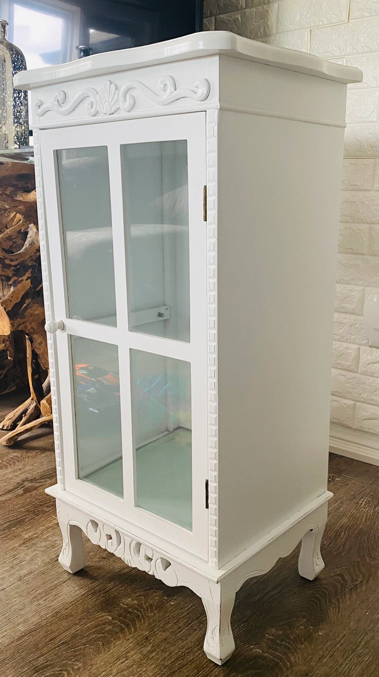 3. Glass Door Beauty: The glass door adds an element of charm, allowing you to display your treasured items.
