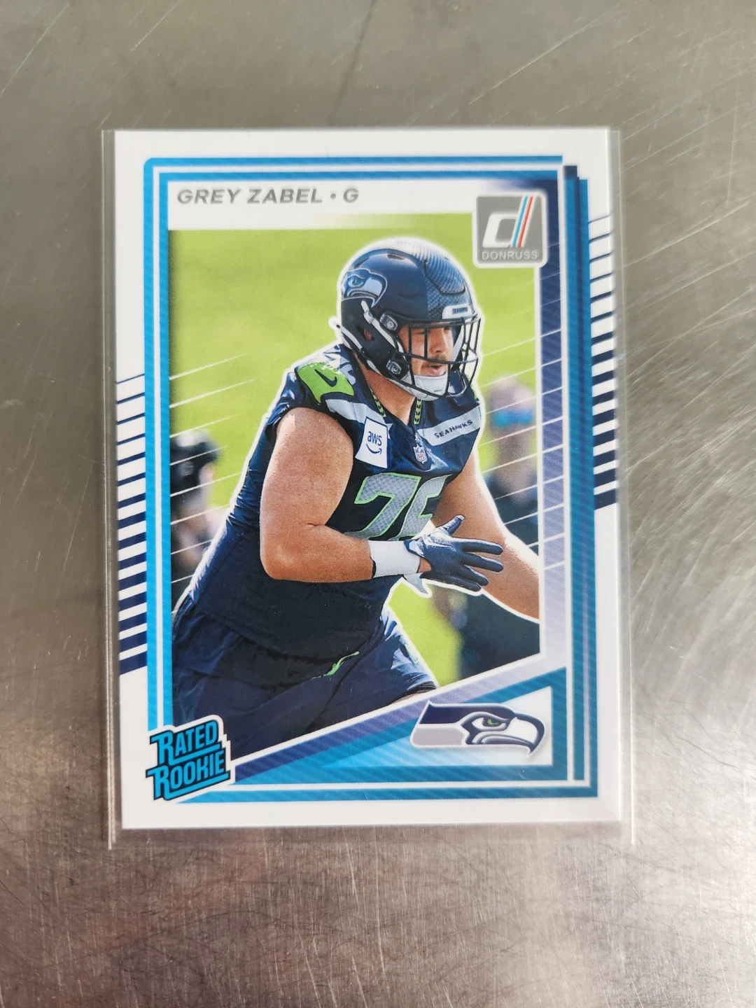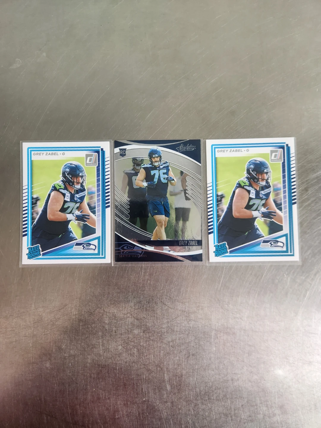 Grey Zabel rookie cards from Donruss and Absolute football. Includes a Donruss Rated Rookie card and an Absolute football card. Great for any Seahawks or football card collector!