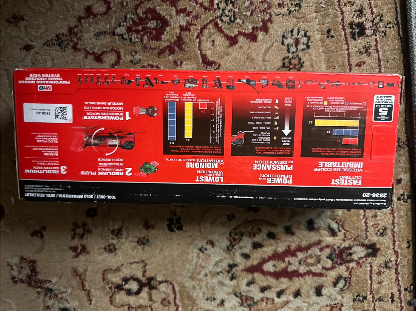 This is a Milwaukee M18 FUEL oscillating multi-tool. It's designed for high performance and low vibration. The tool comes with various accessories, including a wood cutting blade and sanding pads.