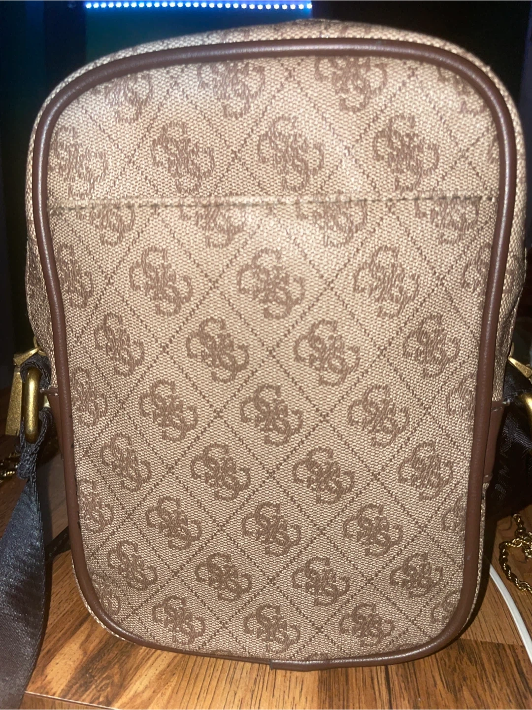 This Guess crossbody bag is in great condition and ready for a new adventure! It features a stylish brown pattern and a convenient size for carrying your essentials