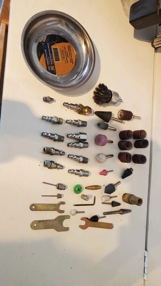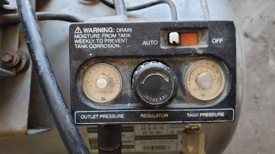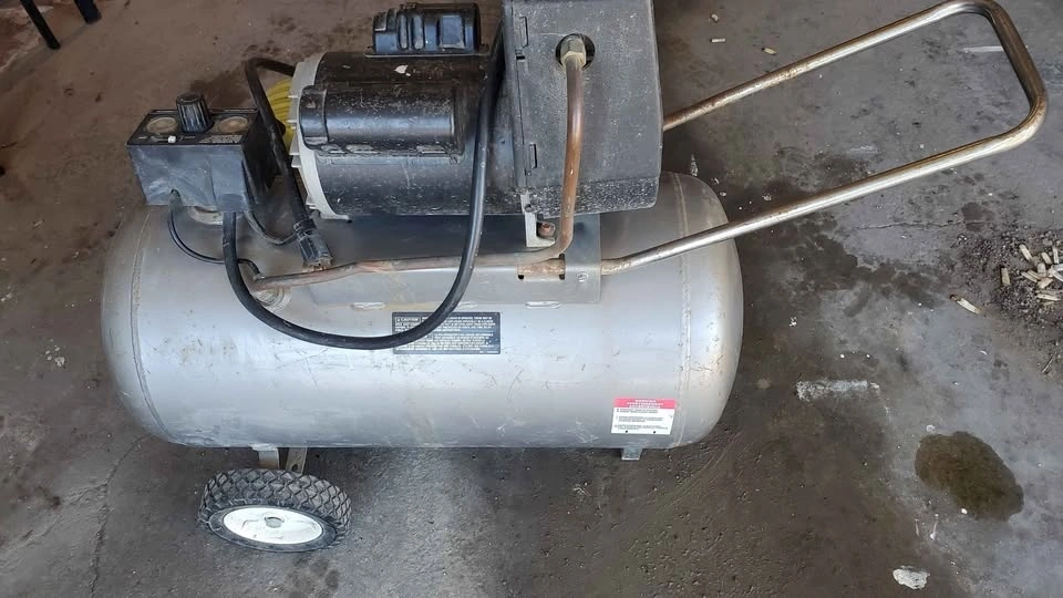 20-gallon tank, includes tools and accessories as shown in pictures. New hose on compressor, still in original packing. The switch doesn't work reliably; it stays on, so you have to remove the power cord to turn it off. Selling because I need cash to repair my van.