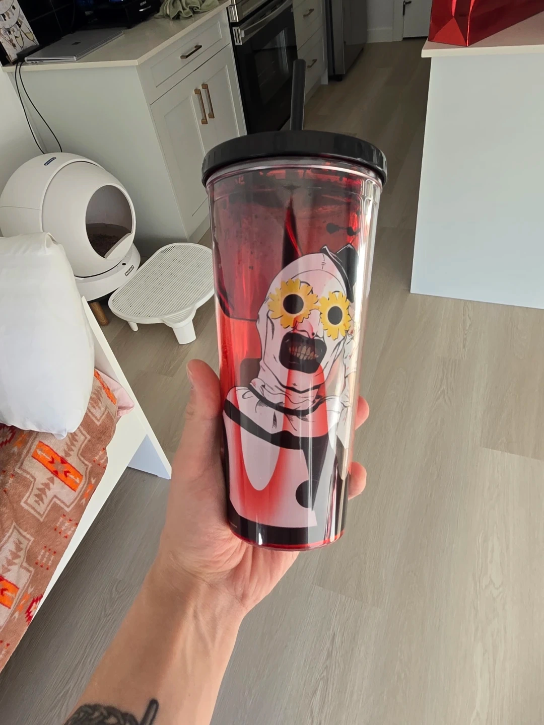 Selling a Terrifier themed tumbler cup featuring Art the Clown. Never used It's in great condition and perfect for any horror fan!