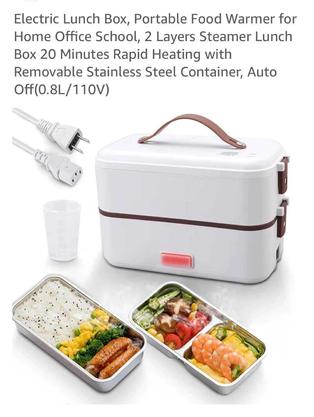 This electric lunch box offers 20 minutes of rapid heating. It has a 0.8L capacity and features removable stainless steel containers. The double-layer design allows for independent heating of different foods.