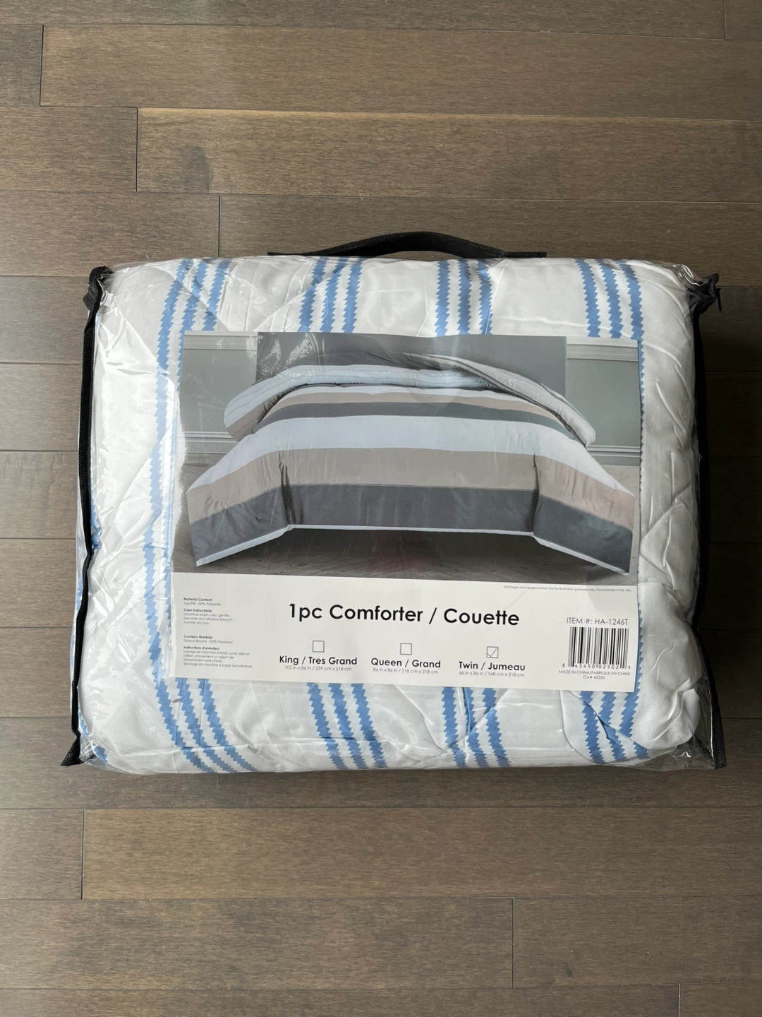 Buy & SellNew Twin Stripped ComforterNew Twin Stripped Comforter$30Brand new, unopened TWIN 1pc comforter. White with blue strips. Check out my other ads! St. CatharinesConditionNewWHERE TO MEETCheck LocationView MapSELLERKhadijaCosmopolitan Common100 reviews0 chats·0 favorites·1 viewsSEND CHAT TO SELLERHi Khadija! I’m interested in your listing.Hi Khadija! I’m interested in your listing.Get the Karrot app to chatSign In to chat