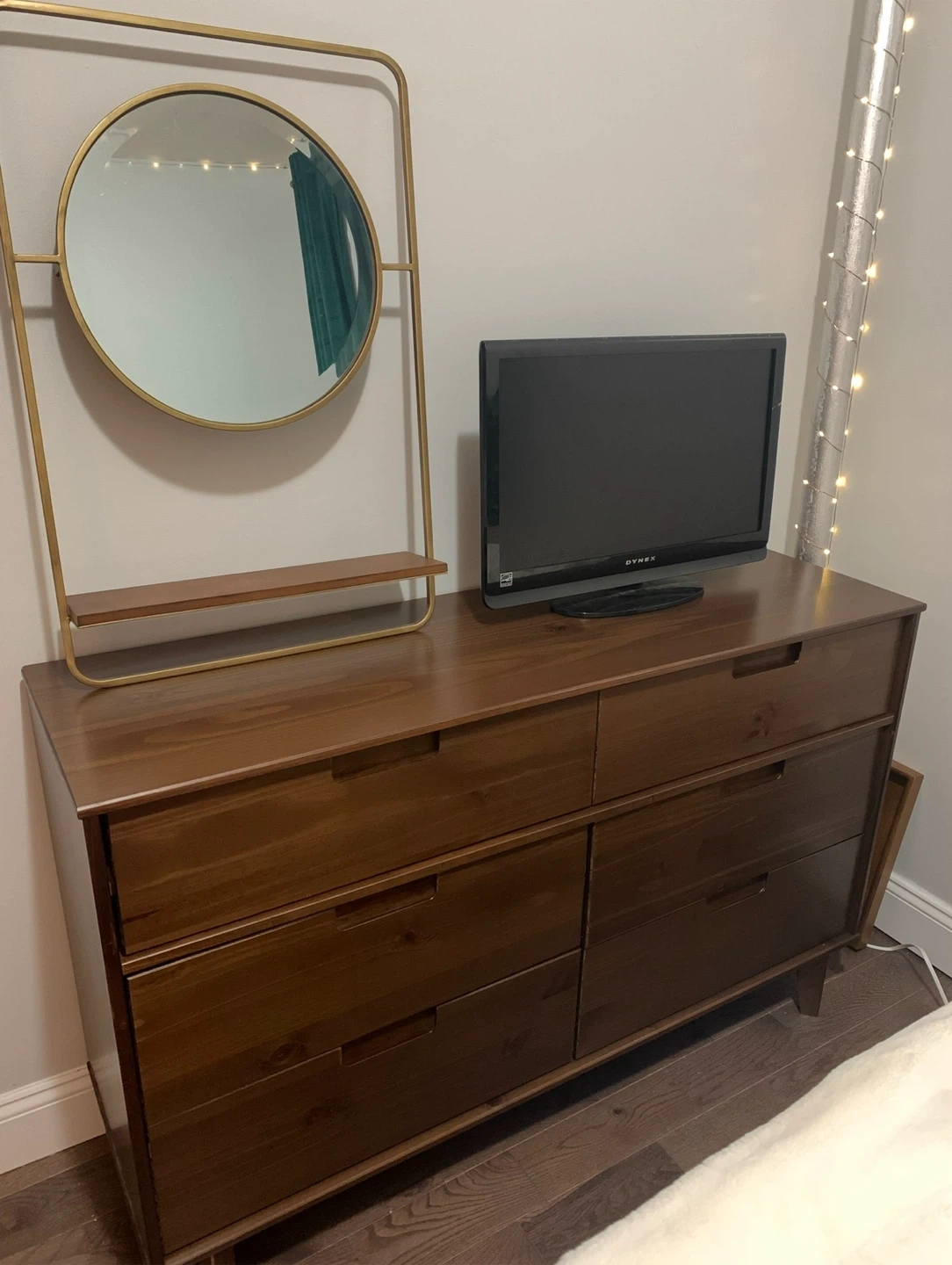 6 drawer dresser (I think pine wood with walnut finish)