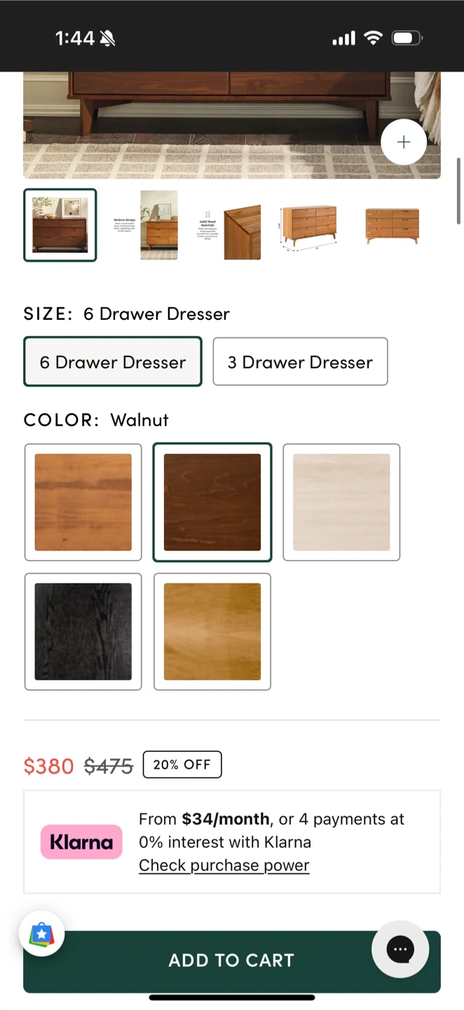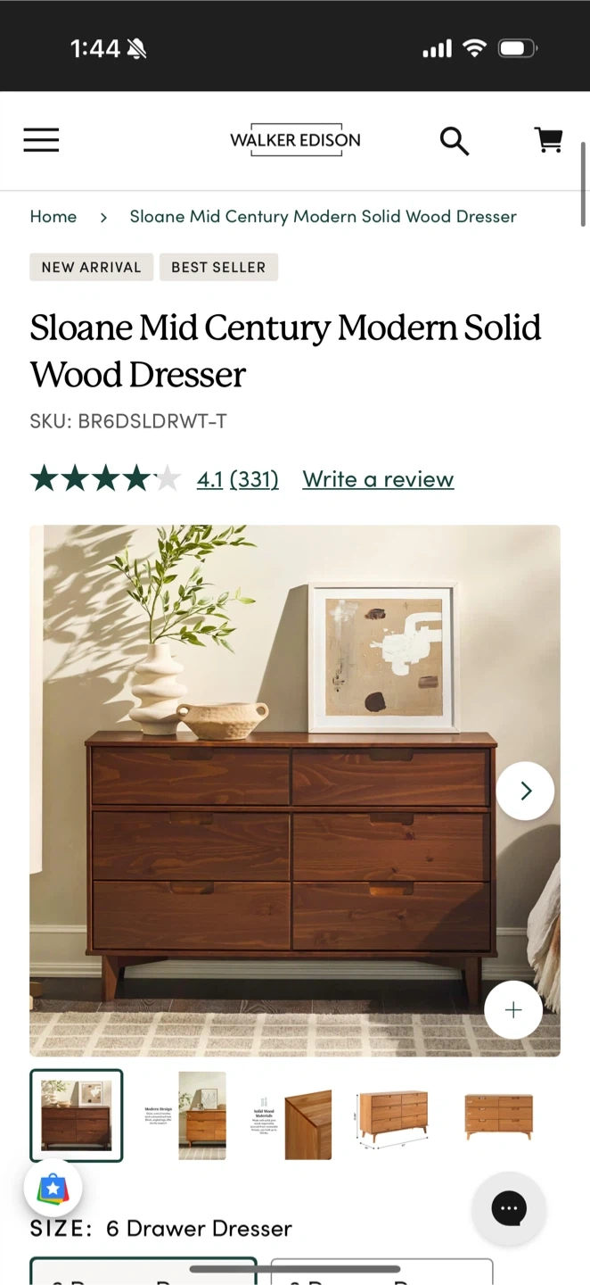 6 drawer dresser (I think pine wood with walnut finish)