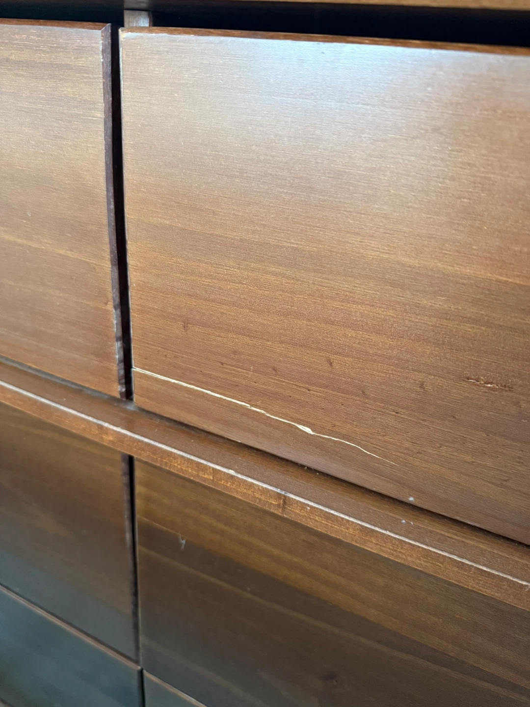 In good shape, has a few nicks/cracks (pics attached). Love this dresser, but it's not a pertect fit in my new space. 2nd picture is wher I got it, 3rd picture is today. Bought for ~$400 in 2021.