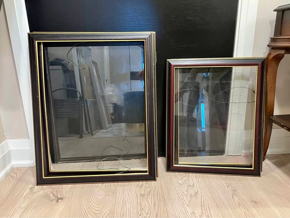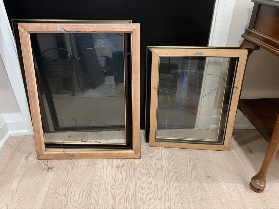 Set of 4 matching diploma frames with glass. Two frames are approx 17x20” and two frames are approx 21x26” (meant for diploma and 8x10 photo). Some water damage. $60 or best offer. Pick up ASAP.