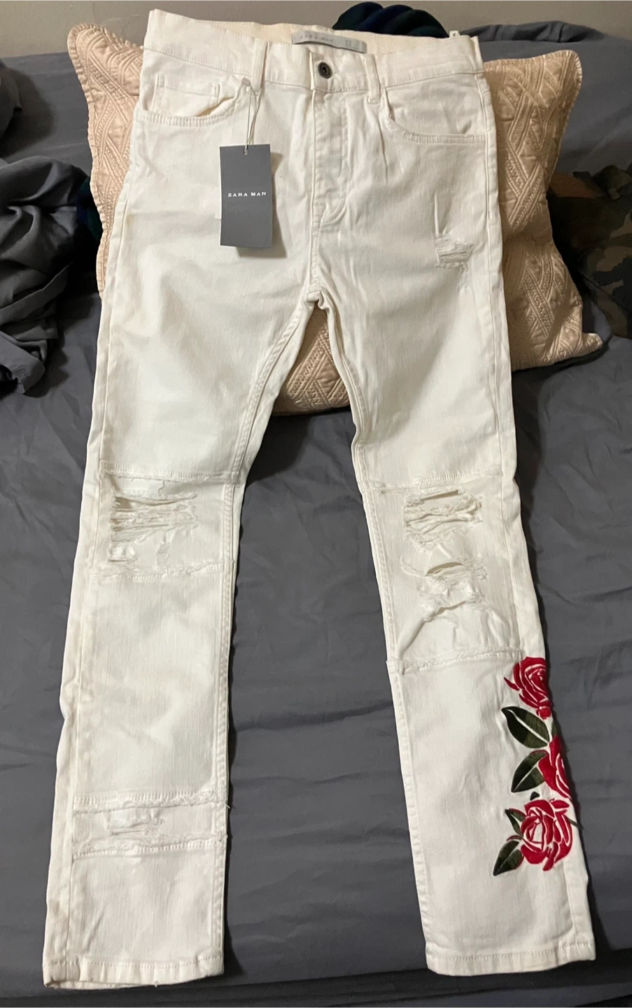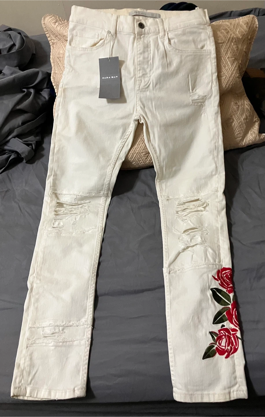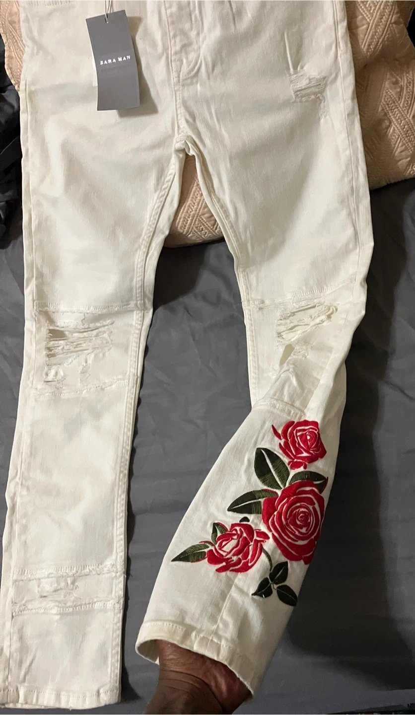 Size 30, Brand new with tags; Zara Floral Jeans. Still in great condition. No holes, rips or stains (all zippers work). Paid $80 for them