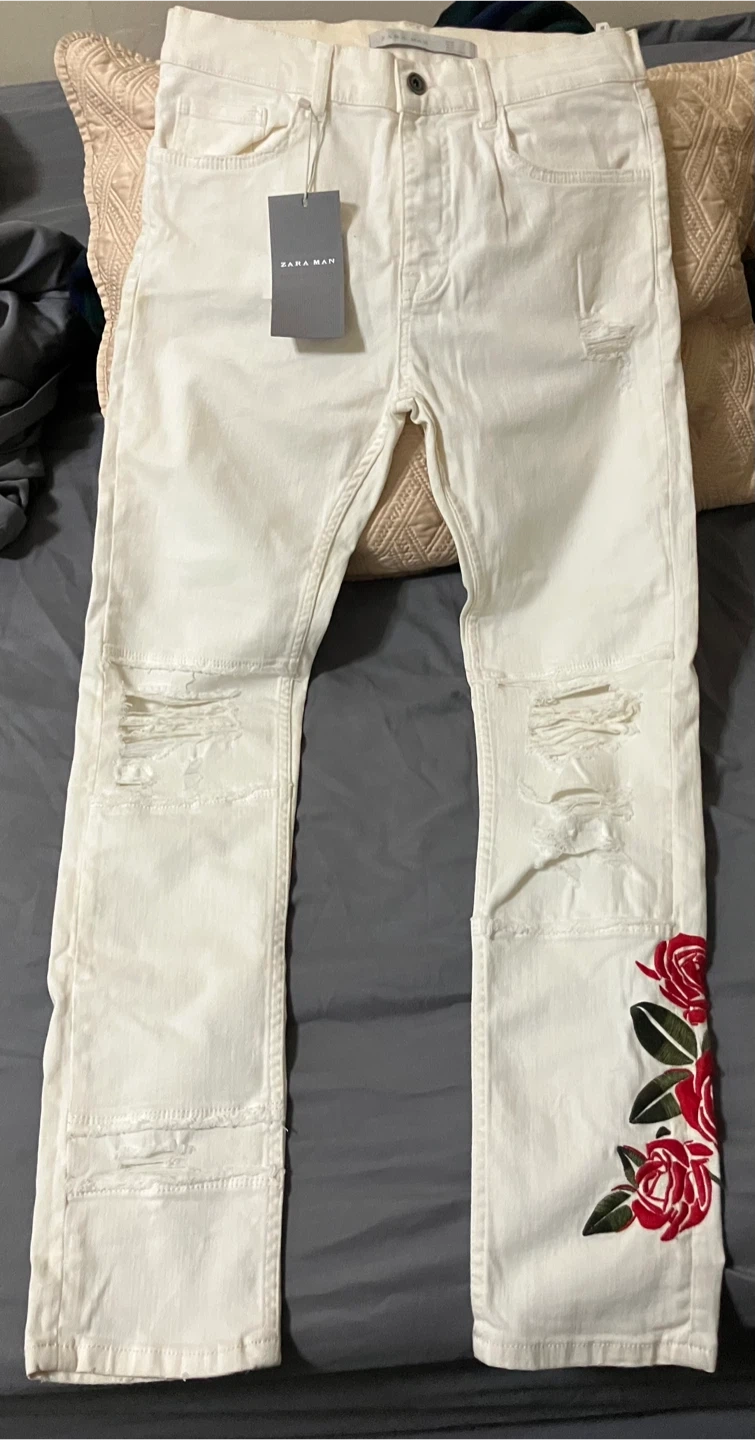 Size 30, Brand new with tags; Zara Floral Jeans. Still in great condition. No holes, rips or stains (all zippers work). Paid $80 for them