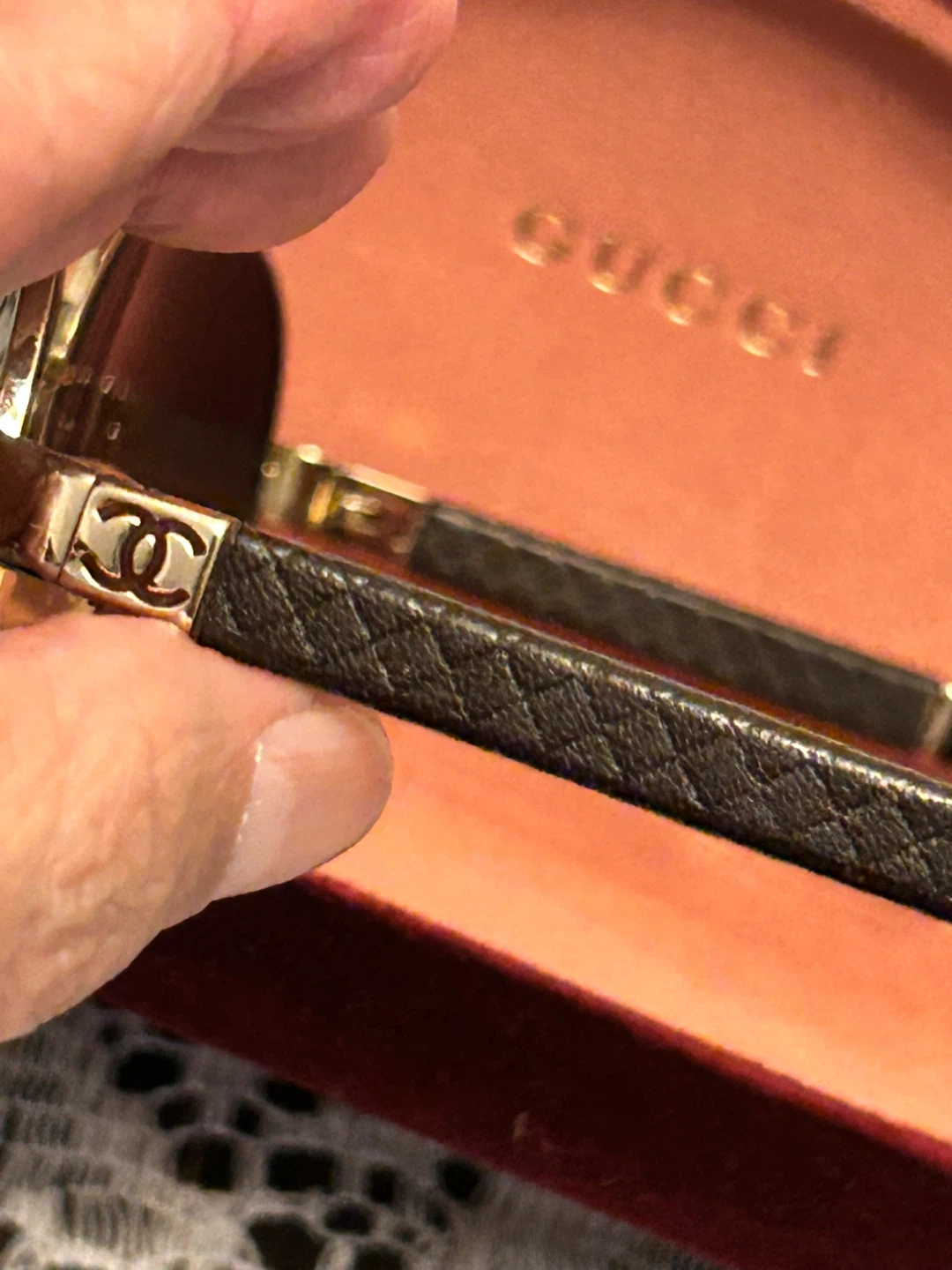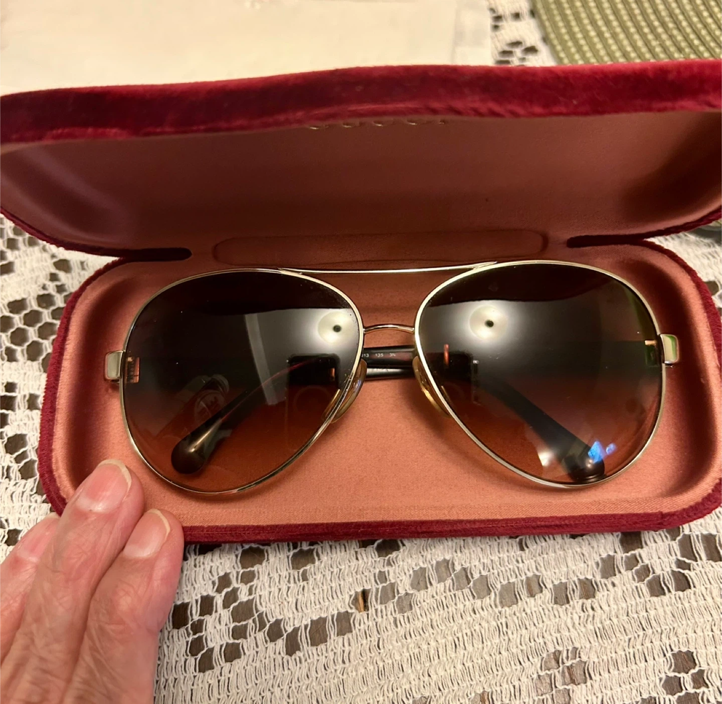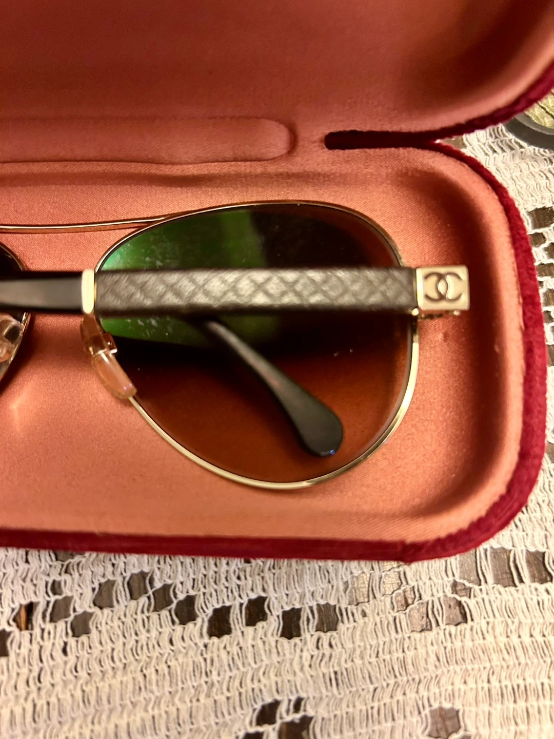 Beautiful aviator pilot sunnies . Leather quilted arms in brown . Cc on arm . Comes with a wine velvet hard case because I lost the Chanel case .