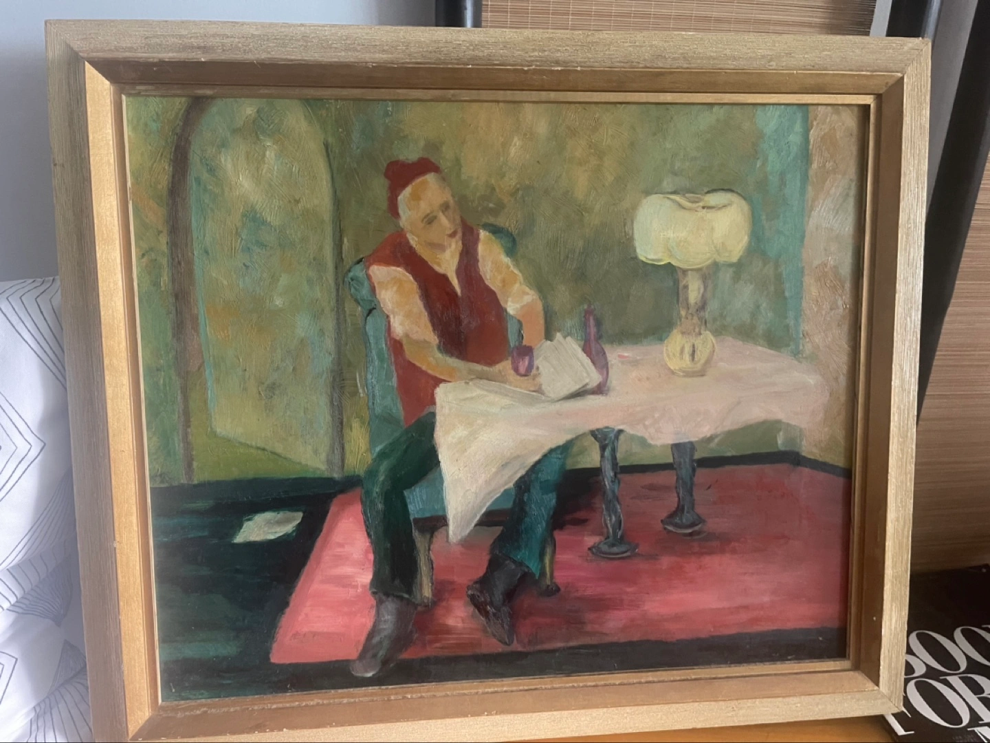 Buy & SellVintage Framed Painting of Seated ManVintage Framed Painting of Seated Man$65Mid-century framed artwork of a man at a table with a lamp. Oil on canvas in a gold frame. Measures approx. 25"x21".DimensionsW25inch*H21inchWHERE TO MEETCheck LocationView MapSELLERverifiedTonyOld Toronto22714 reviews0 chats·1 favorites·24 viewsSEND CHAT TO SELLERHi Tony! I’m interested in your listing.Hi Tony! I’m interested in your listing.Get the Karrot app to chatSign In to chat