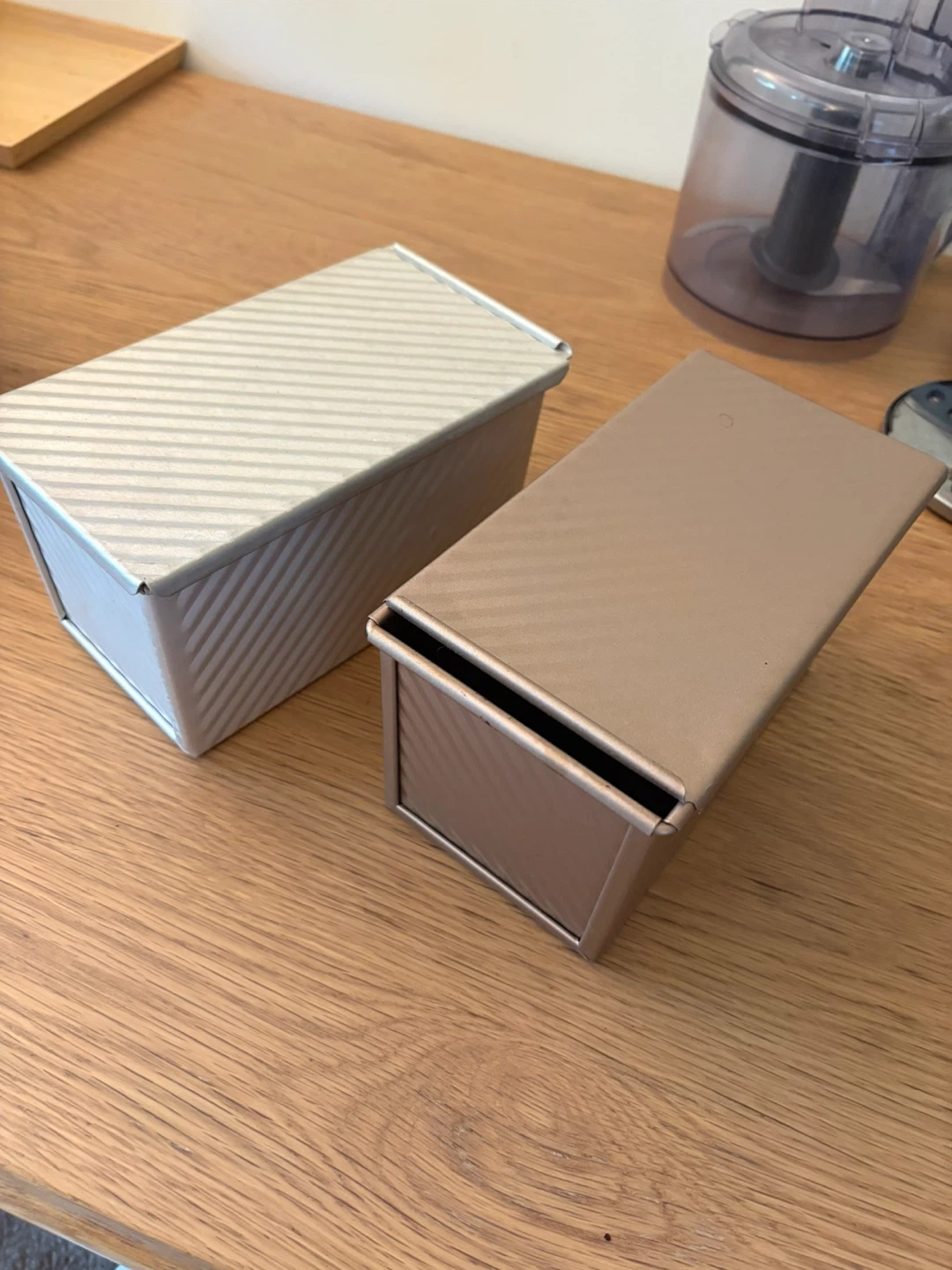 Selling a set of two bread loaf pans. One is a silver colour and the other is a rosegold colour. Used 2 times-no stain no burns!