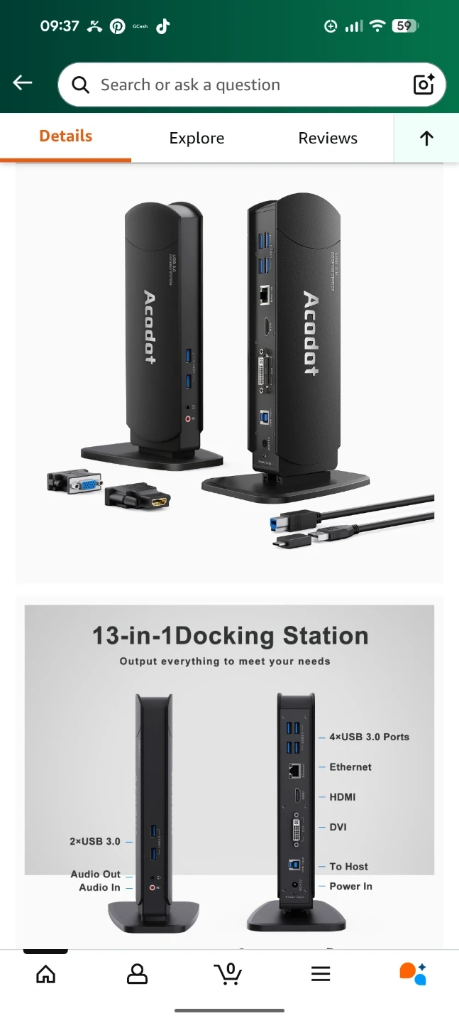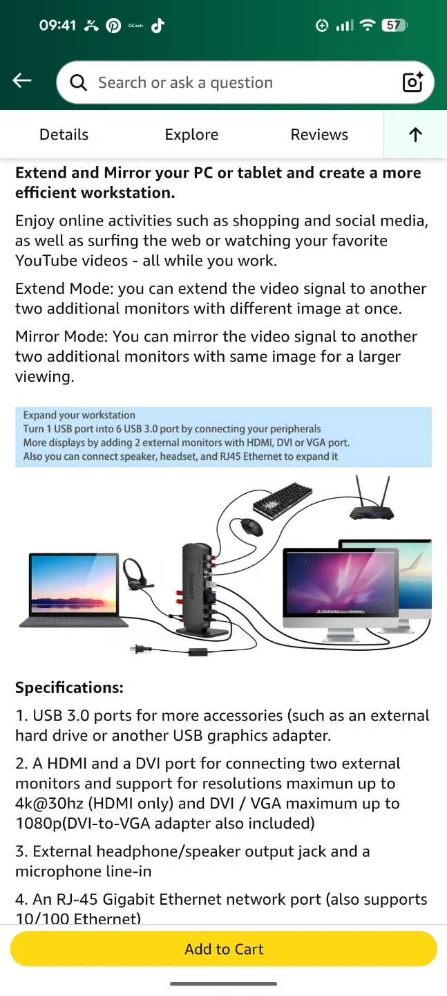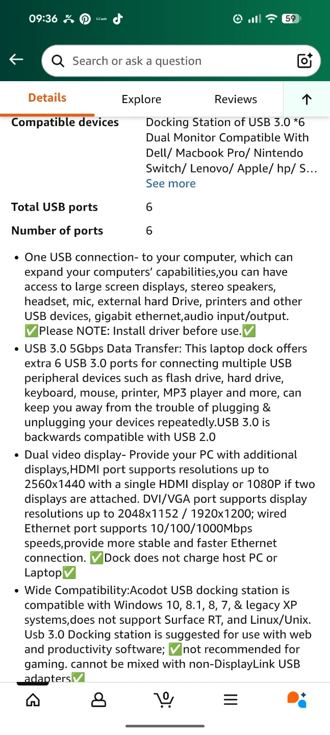 Selling an Acodot USB 3.0 docking station in great condition! It features 4 USB 3.0 ports, Ethernet, HDMI, and DVI ports. It also supports resolutions up to 2560x1440 with a single HDMI display or 1080p if two displays are attached. The dock provides faster Ethernet connection at 10/100/1000Mbps speeds. Comes with the Unit and AC adapter only, cables not included...