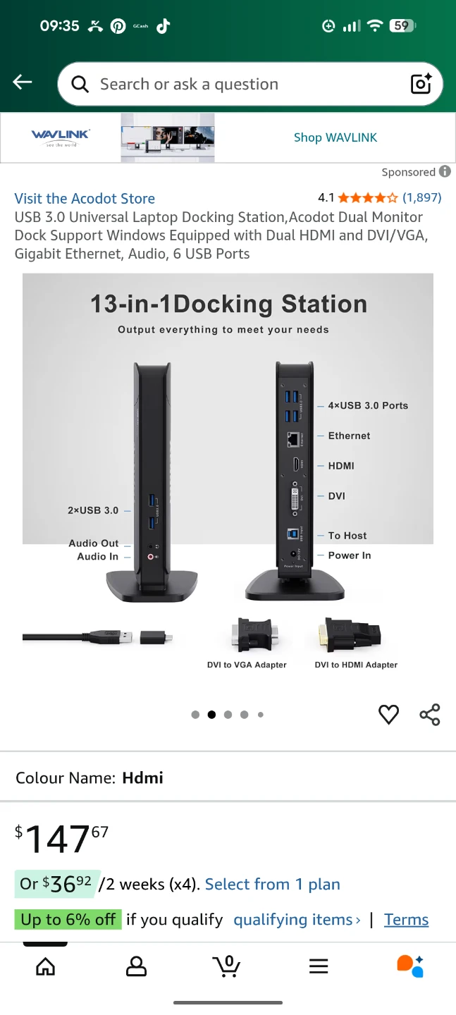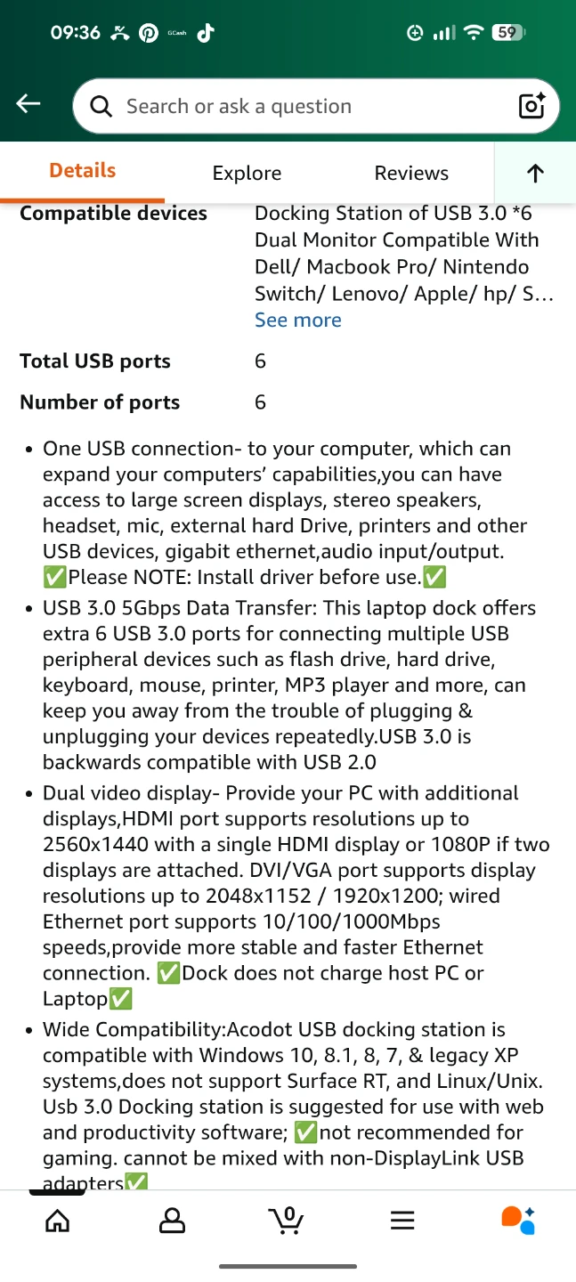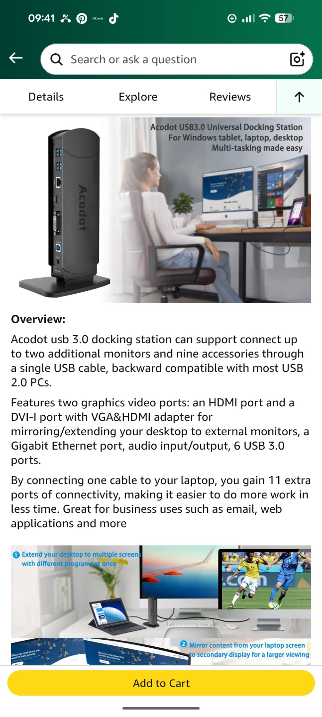 Selling an Acodot USB 3.0 docking station in great condition! It features 4 USB 3.0 ports, Ethernet, HDMI, and DVI ports. It also supports resolutions up to 2560x1440 with a single HDMI display or 1080p if two displays are attached. The dock provides faster Ethernet connection at 10/100/1000Mbps speeds. Comes with the Unit and AC adapter only, cables not included...