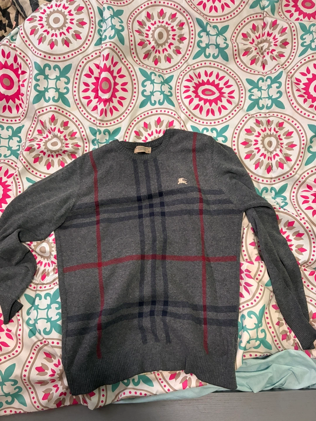 Buy & SellBurberry London Grey Cotton Sweater - Size MBurberry London Grey Cotton Sweater - Size M$135Cozy Burberry London sweater in a classic grey colour! It's made of 100% cotton and features a stylish plaid pattern. Size is M.ConditionNewSizeMBrandBurberryWHERE TO MEETCheck LocationView MapSELLERverifiedMikeRiley Park600 reviews0 chats·1 favorites·34 viewsSEND CHAT TO SELLERHi Mike! I’m interested in your listing.Hi Mike! I’m interested in your listing.Get the Karrot app to chatSign In to chat