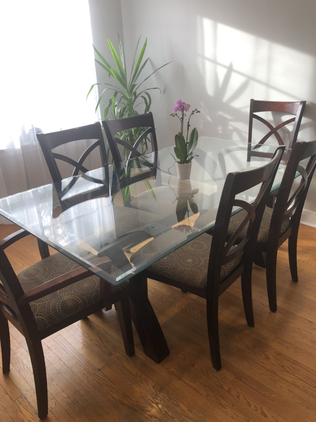 Used Table (glass)and chairs (6)set. Willing to negotiate, please contact.