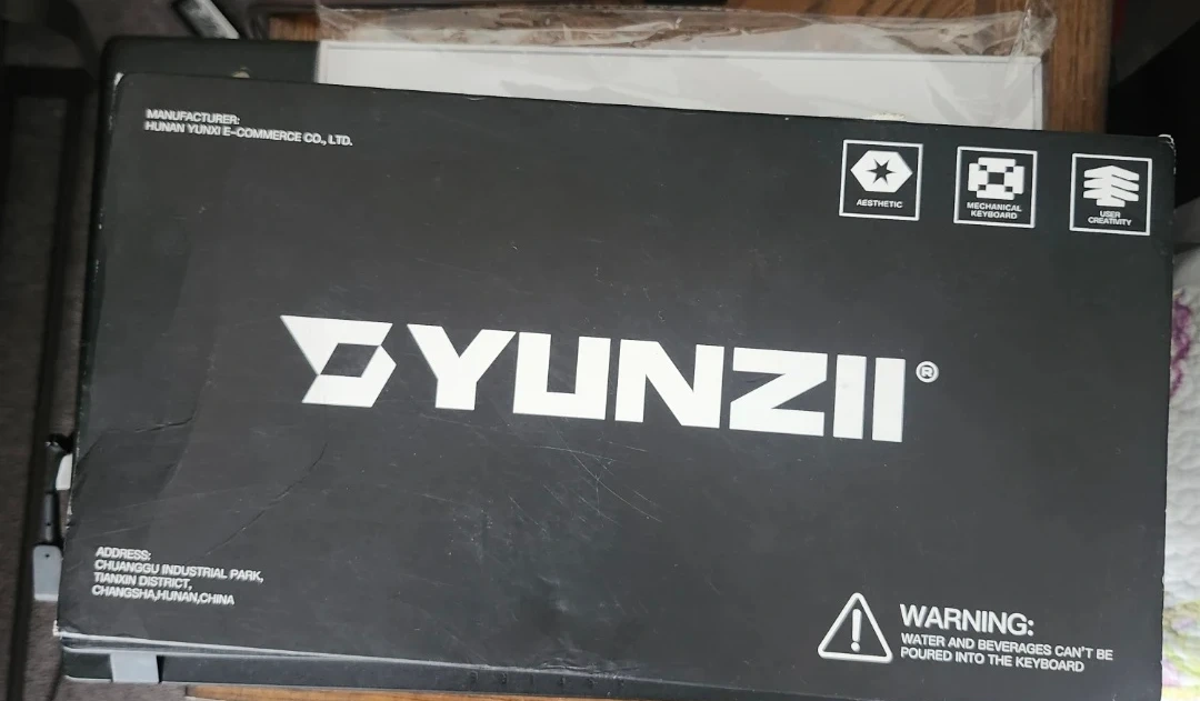This is a Yunzhi YZ75 mechanical keyboard. It's designed for aesthetics, typing, and user creativity. Water and beverages can't be poured into the keyboard.