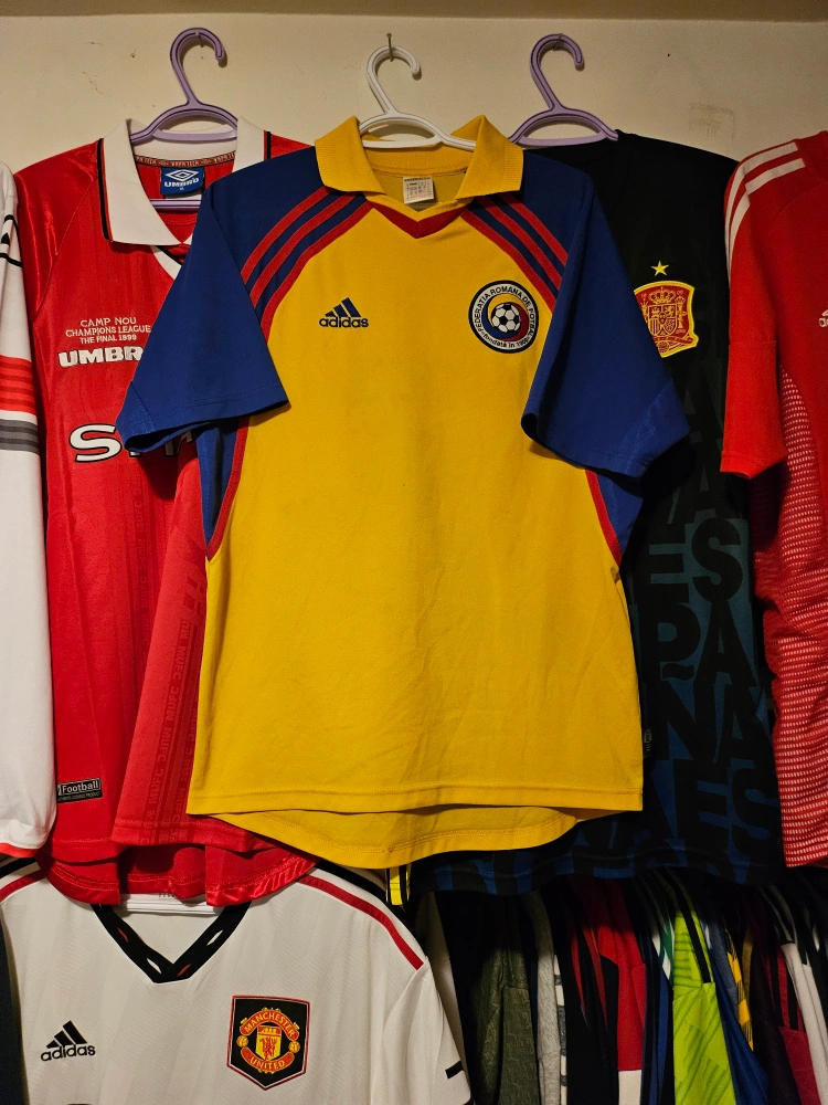 Incredibly rare training jersey from the 1998 world cup for Romania national team. These kits are rare and hardly ever archived due to them being training items and not the main home, away or goal keeper jerseys you see on the fields.