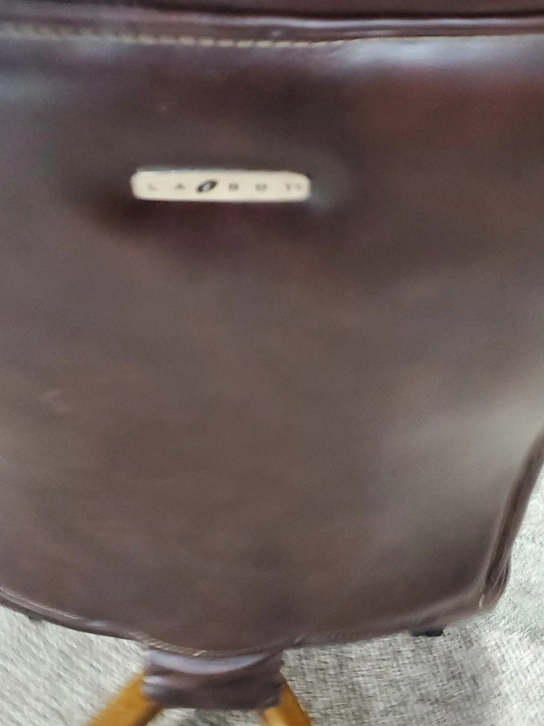 This La-Z-Boy executive office chair comes in a rich brown faux leather. It features a padded seat and back for comfort. The chair has wooden armrests and a five-wheel base for easy mobility.