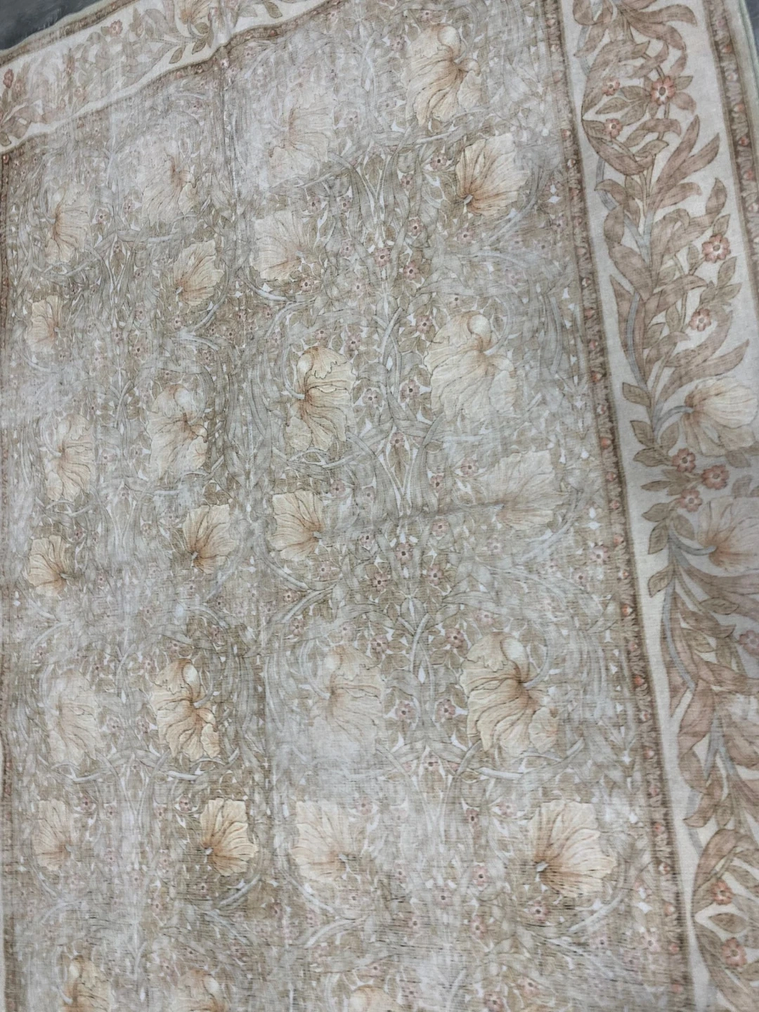This BRANDED area rug features a beautiful, intricate floral pattern with a border. It's a neutral cream and beige colour scheme that'll match most decor. It's available in new condition, almost untouched.