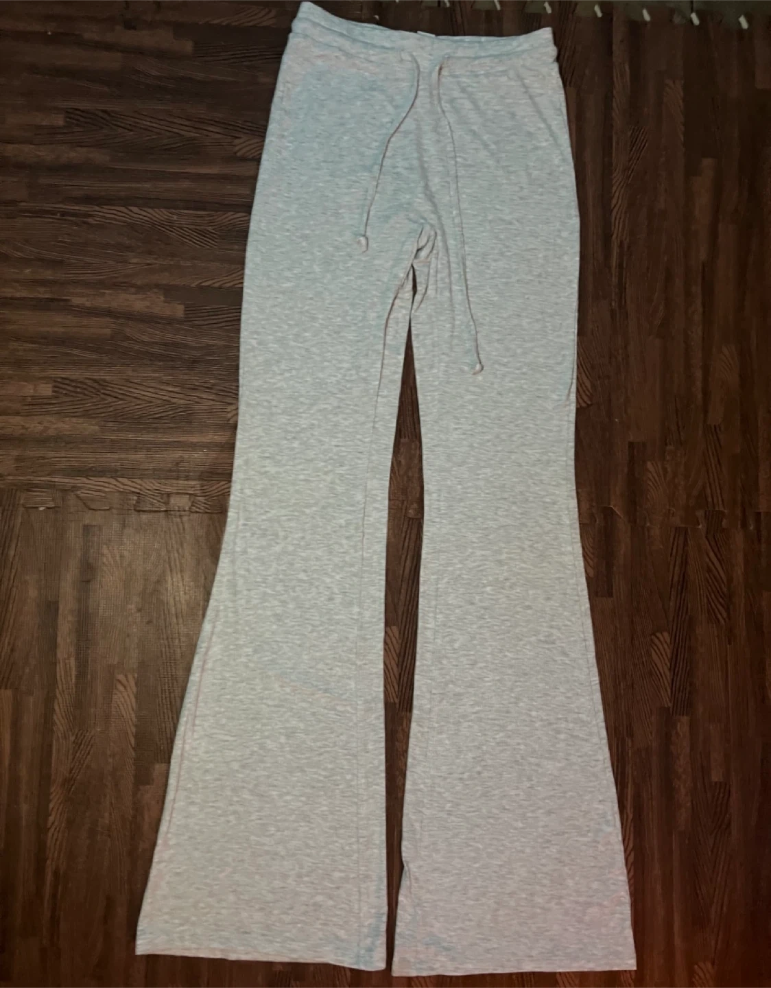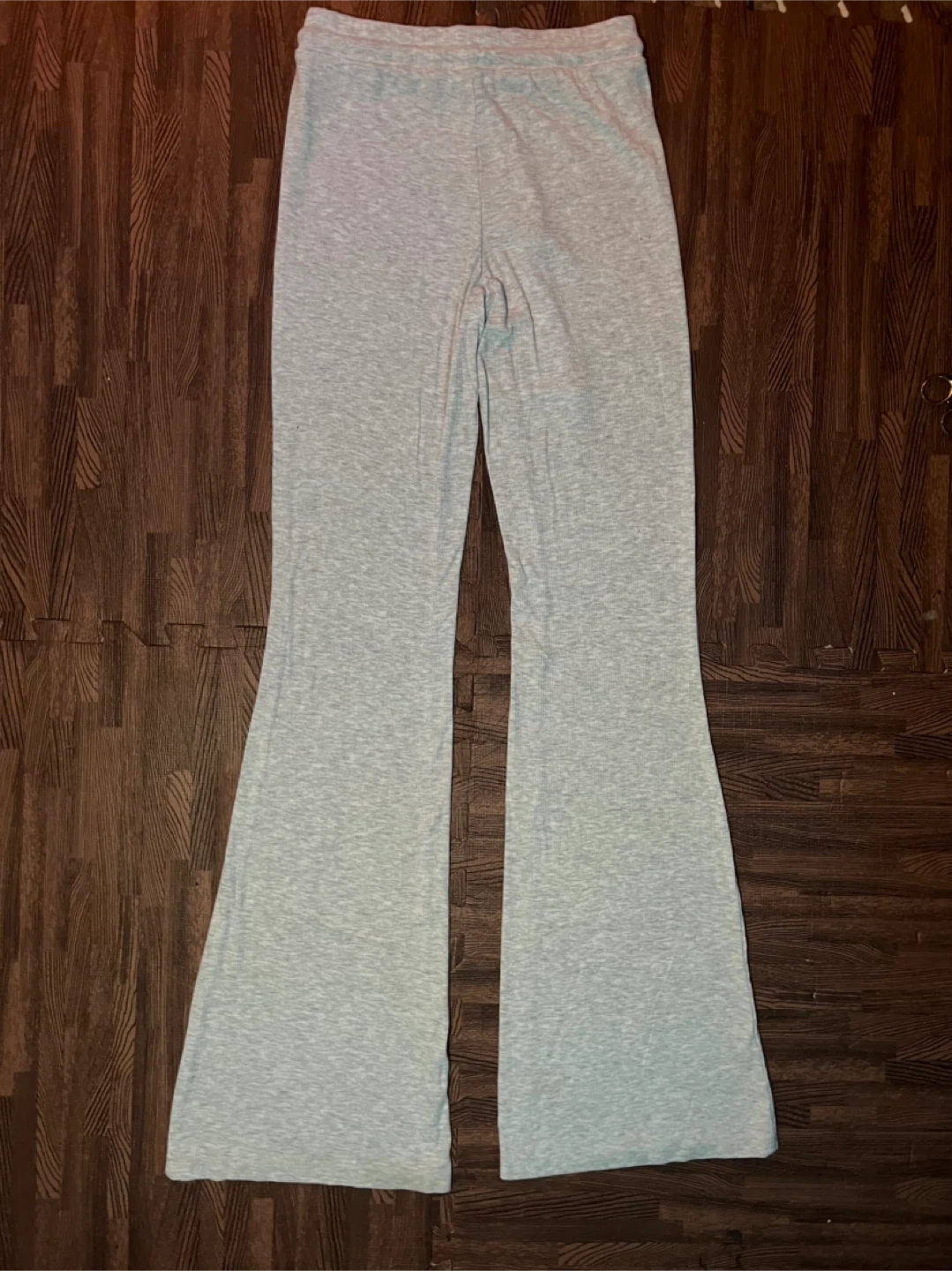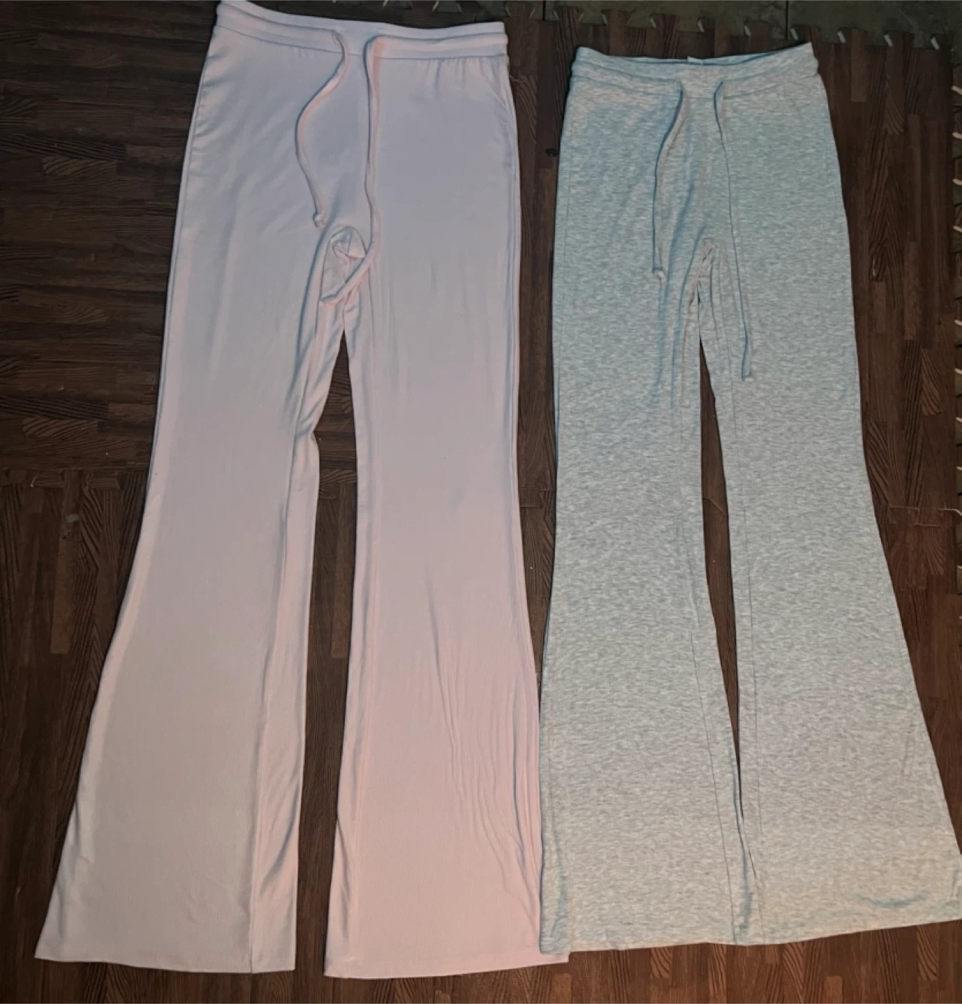 Both are super comfy and have that cute flared fit that looks really flattering on. The baby pink small pair is perfect if you like a soft, girly vibe, and the grey Xs pair goes with literally anything. both in amazing condition 15$ each or both for $30