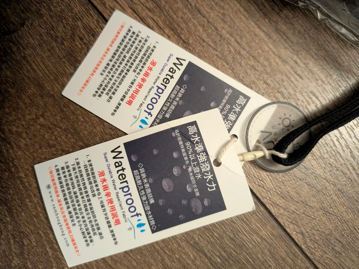 It's water repellent, instant dry, and anti-UV. It's also windproof and made with carbon fiber. Super durable water repellent fabric. It's approx 150g, very lightweight and portable!