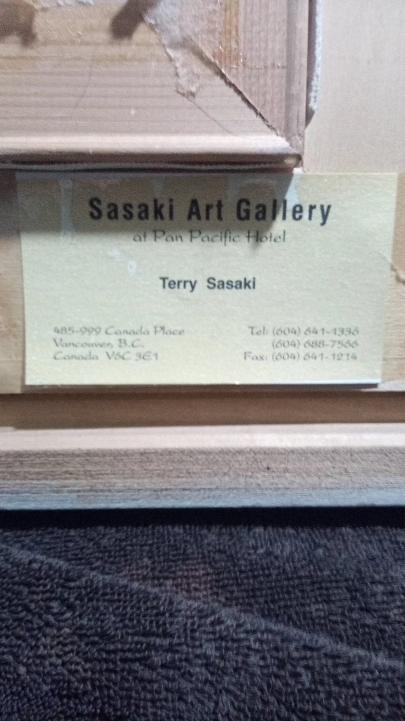 This is an original oil painting titled "Through The Lilies" by artist B.F. McAdam. The painting measures 16x20 inches. It's framed and comes from the Sasaki Art Gallery.