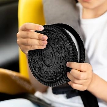 This is an Oreo inspired stress relief toy! It's perfect for fidgeting and relieving stress. It has a unique design that looks like a real Oreo cookie, making it a fun and quirky addition to your desk or workspace