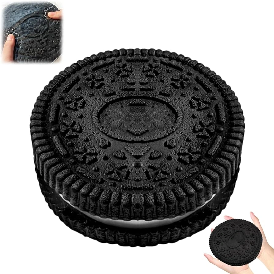 This is an Oreo inspired stress relief toy! It's perfect for fidgeting and relieving stress. It has a unique design that looks like a real Oreo cookie, making it a fun and quirky addition to your desk or workspace