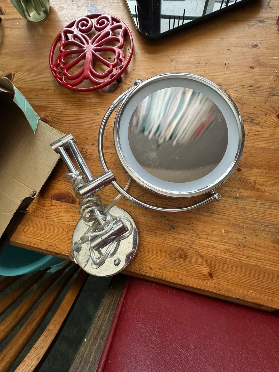 DANIELLE CREATIONS L.E.D. wall mount mirror with extension arm. It features 5x magnification and ultra vue optical precision quality glass. The mirror has an 8.5" dia. with a 13.25" extended arm length. Easy to install with multiple light settings ideal for your beauty needs! I have 2 of these. Pick up in Chestermere