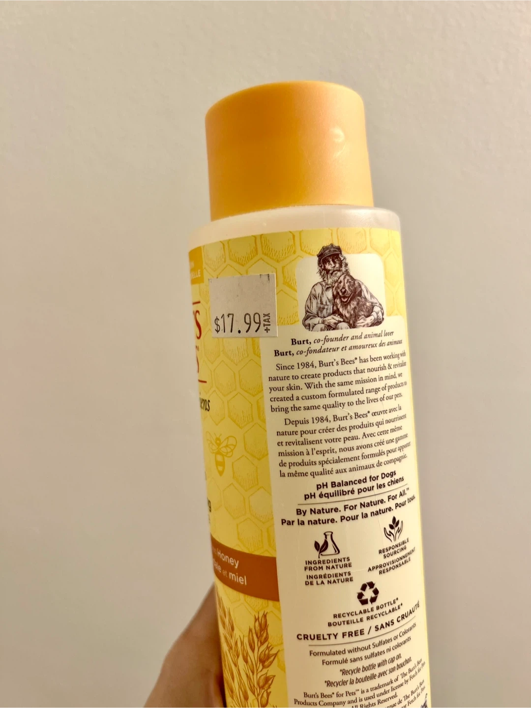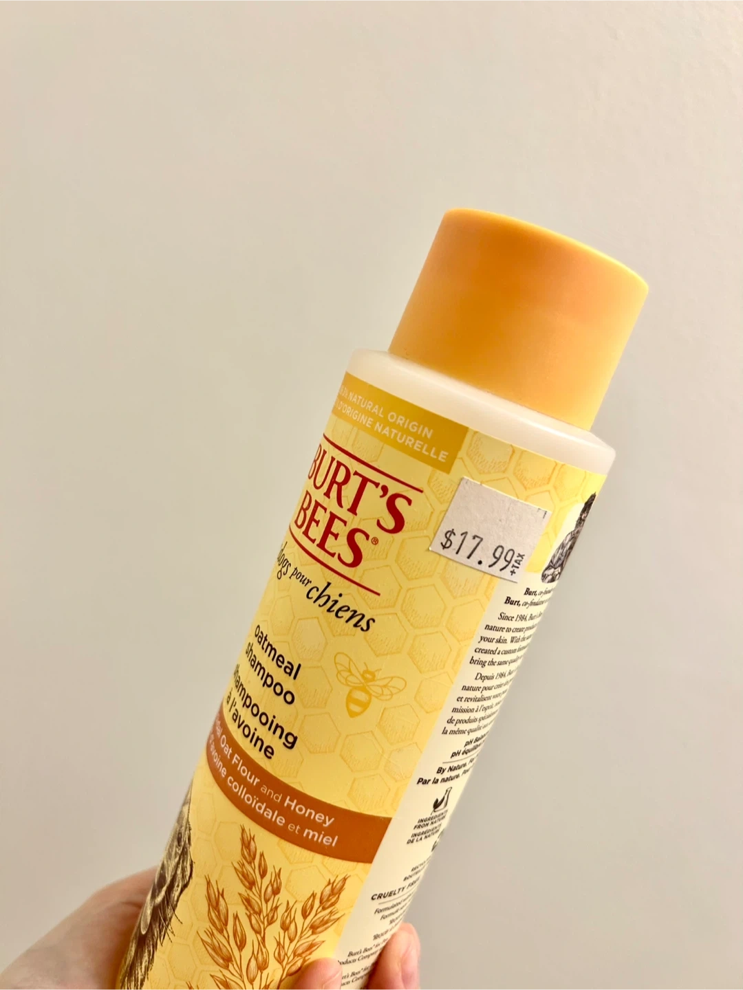 Selling a bottle of Burt's Bees® Oatmeal Dog Shampoo - Colloidal Oat Flour & Honey.
