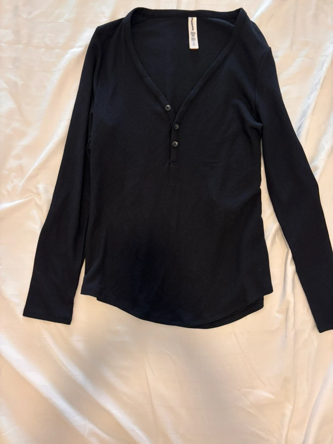 Selling a black waffle knit top from Aritzia's Babaton line! It's in great condition and perfect for layering or wearing on its own. The material is soft and comfortable, making it a versatile addition to any wardrobe