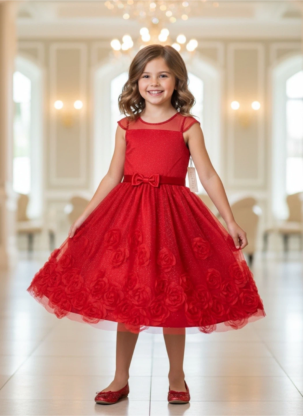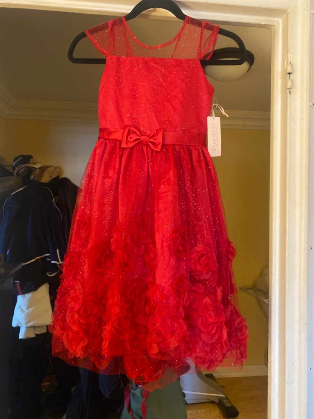 Biscotti Collection Red Sparkly Flower Dress Size 8