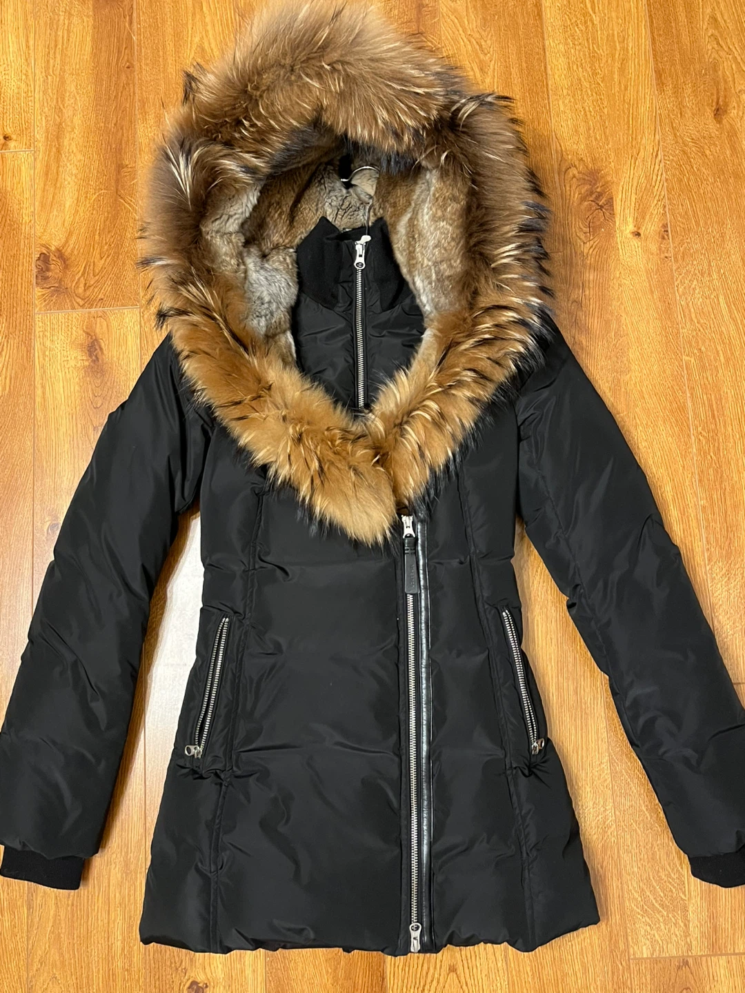 Black Down Winter Parka with Fur Hood