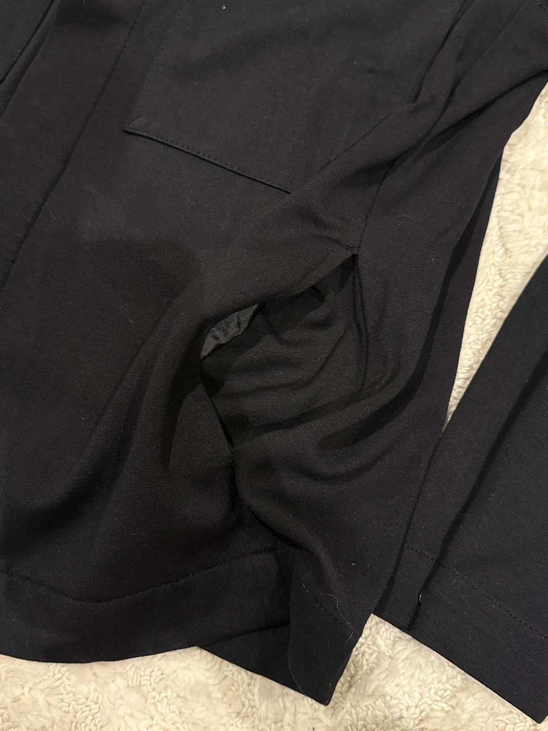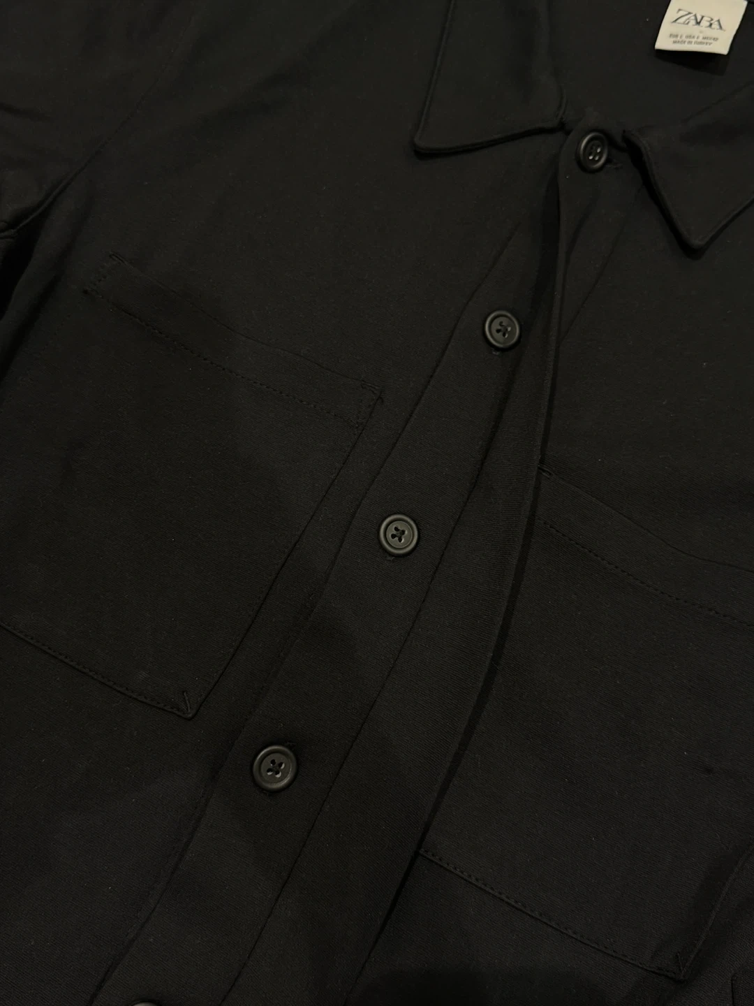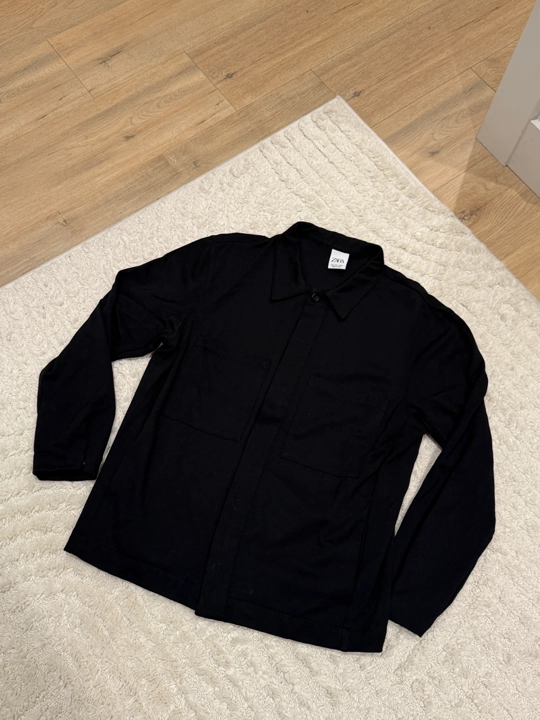 This black long sleeve shirt jacket from Zara has a button-up front and two chest pockets. It's a versatile piece that can be worn as a light jacket or a shirt.