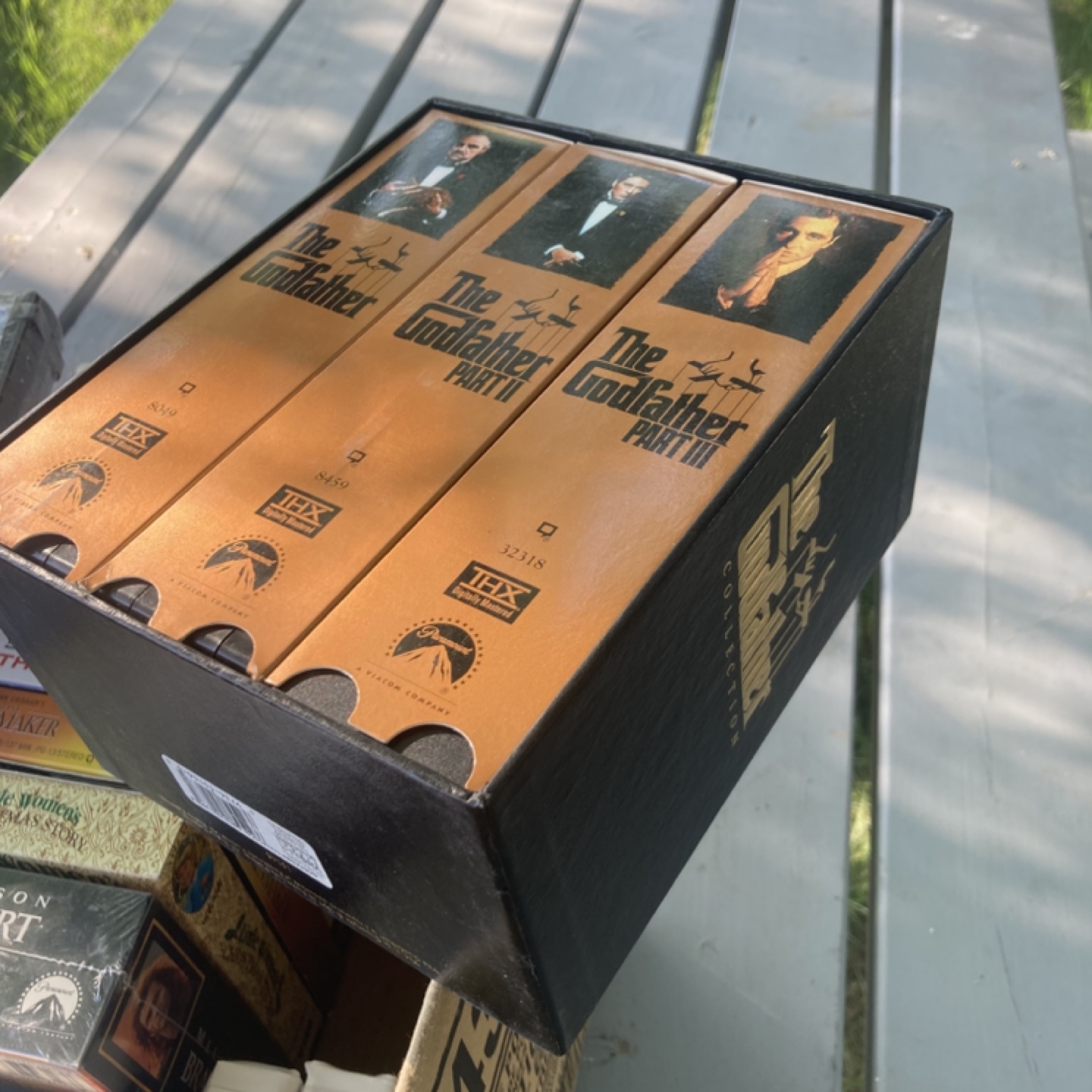 Large collection of VHS tapes. Includes The Godfather trilogy, various action, drama, and thriller films. Great for collectors or movie lovers. Some cases show wear so are new factory sealed