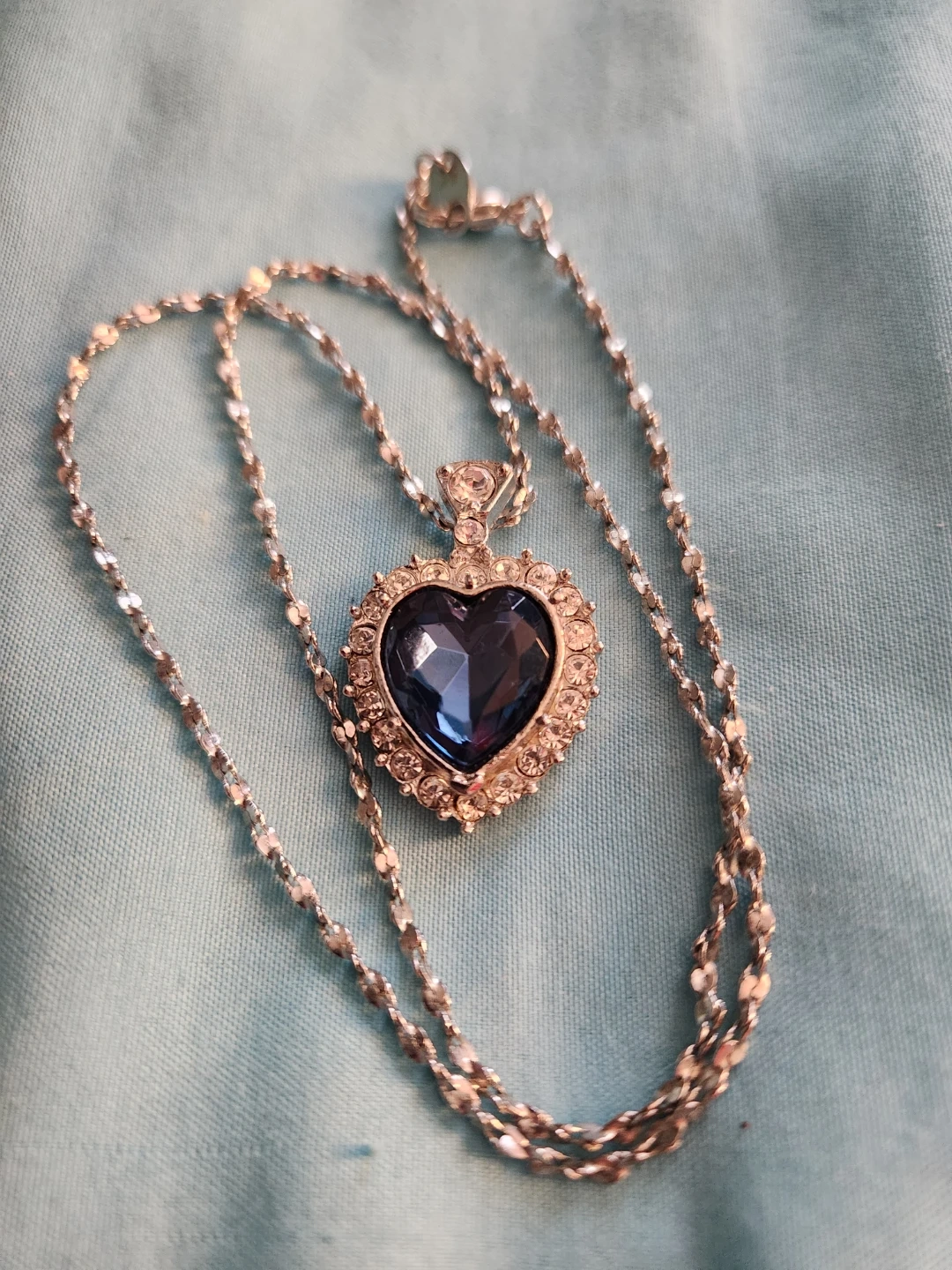 Heart Pendant Necklace with Blue Gemstone
