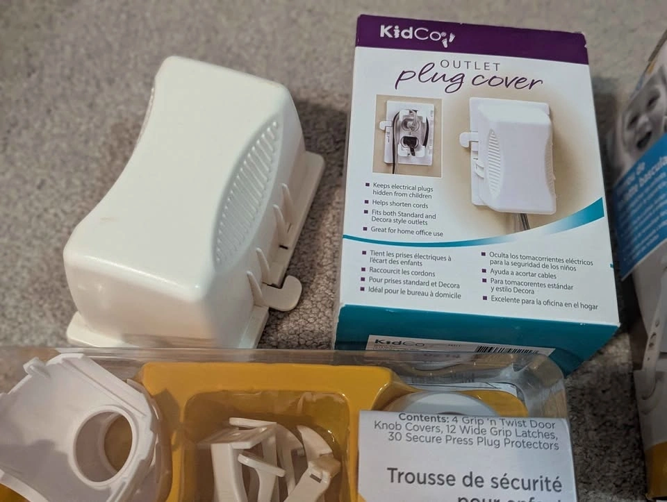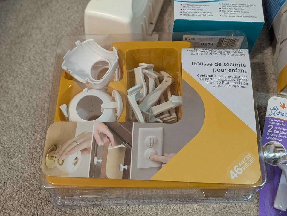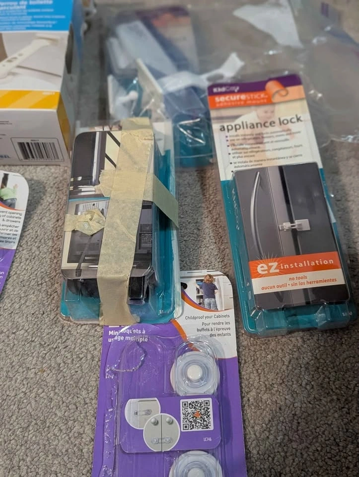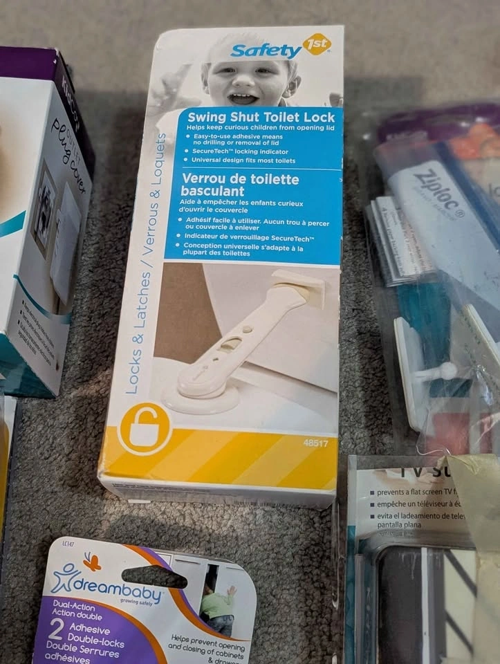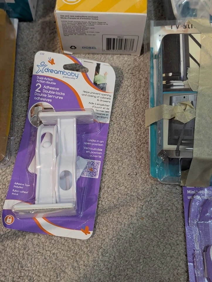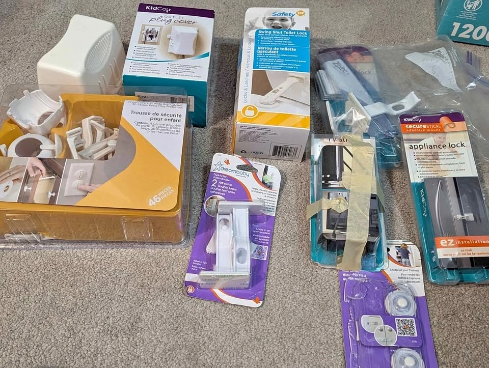 Includes handle coverage, socket plugs, plugs with openings for cords, toilet lock, appliance straps, drawers and cupboard closures, etc. Most unused and still in the box. Pick up in South Etobicoke, Islington and Norseman.