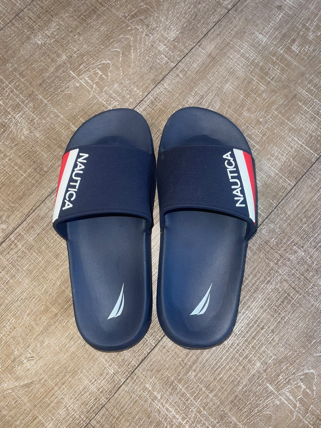 Selling a pair of Nautica slides in navy blue. They're in great condition and ready for a new owner! Perfect for casual wear or a trip to the beach