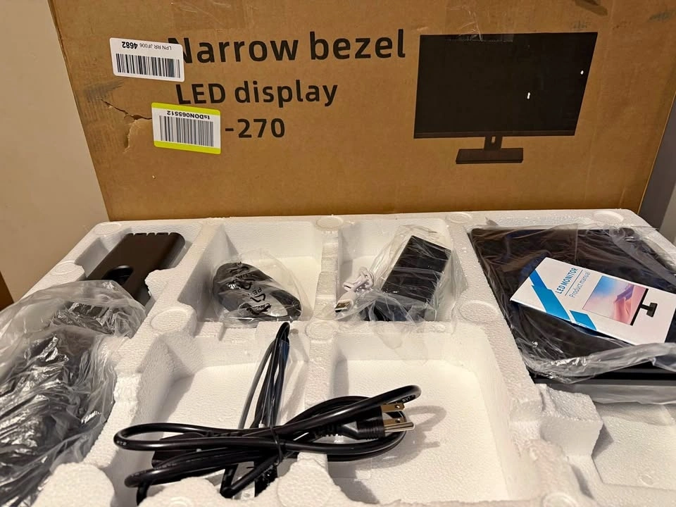 Selling a brand new HD-270 LED Display. This monitor features an ultra-slim "narrow bezel" design, perfect for a sleek office setup or a dual-monitor gaming rig! Model: HD-270. Size: 27 inches. Condition: Brand New! Only opened to verify contents. Includes: Monitor, Stand, Power Cable, HDMI/VGA Cable, and Manual. Features: Slim design, vibrant LED display, and modern aesthetic. Perfect for working from home, students, or casual gaming. Ready to go today! Pick up: North York.
