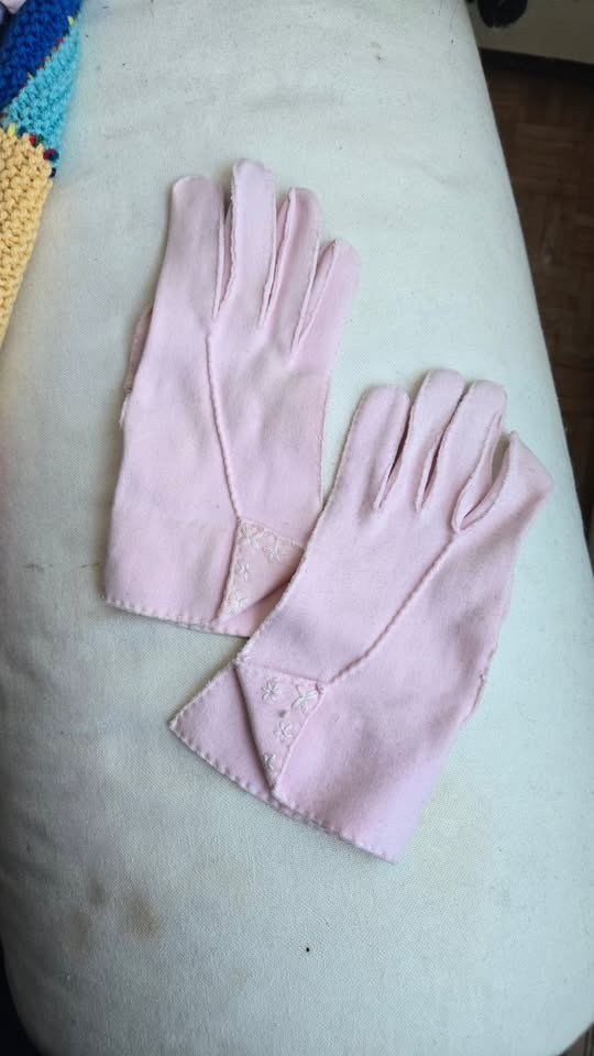 Vintage Gloves - Pink Felt & Blue Mesh