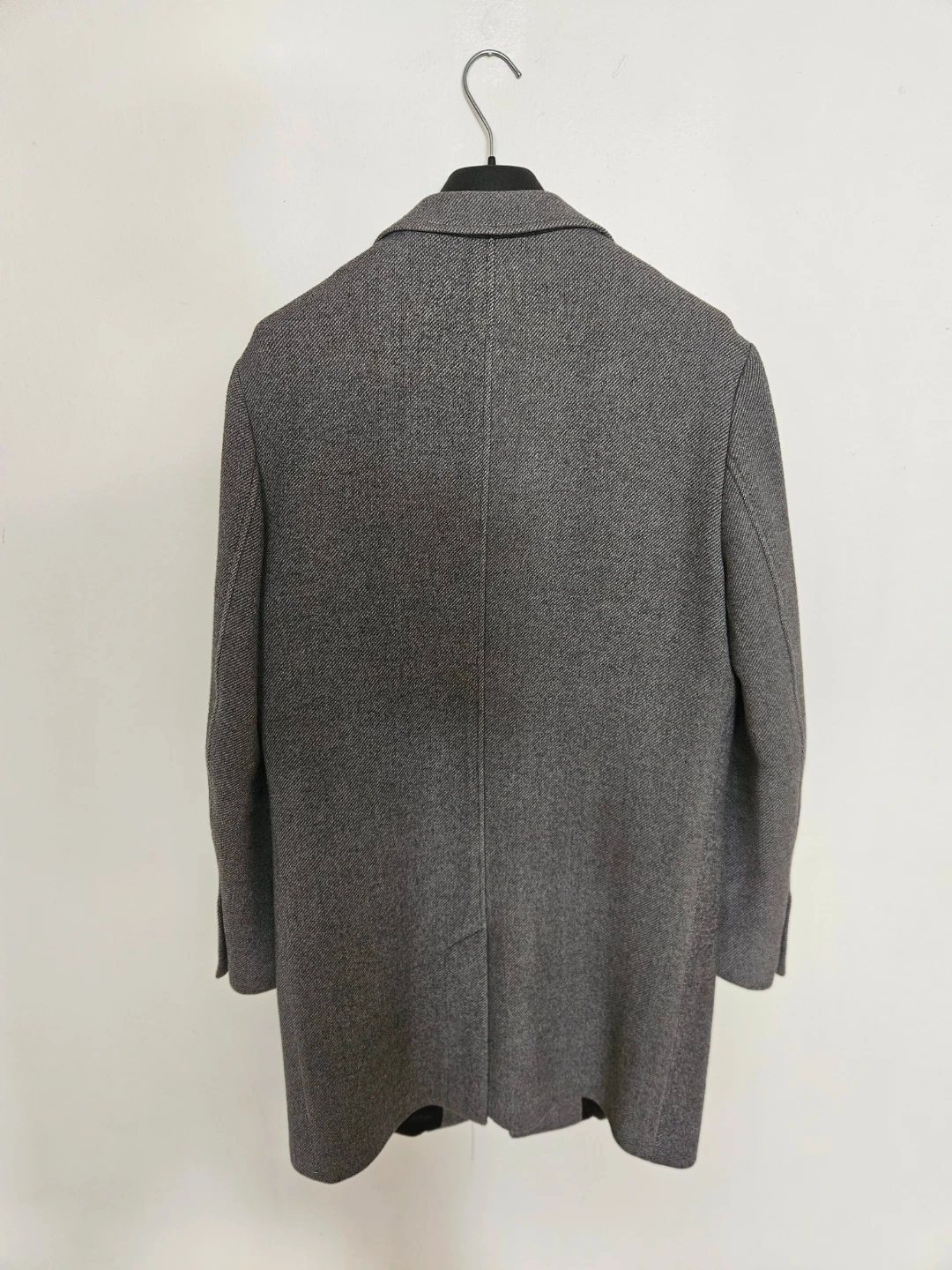 This Rodd & Gunn topcoat comes in a classic grey herringbone pattern. It's made with a wool blend and woven in Italy. Perfect for staying warm and stylish during colder months!