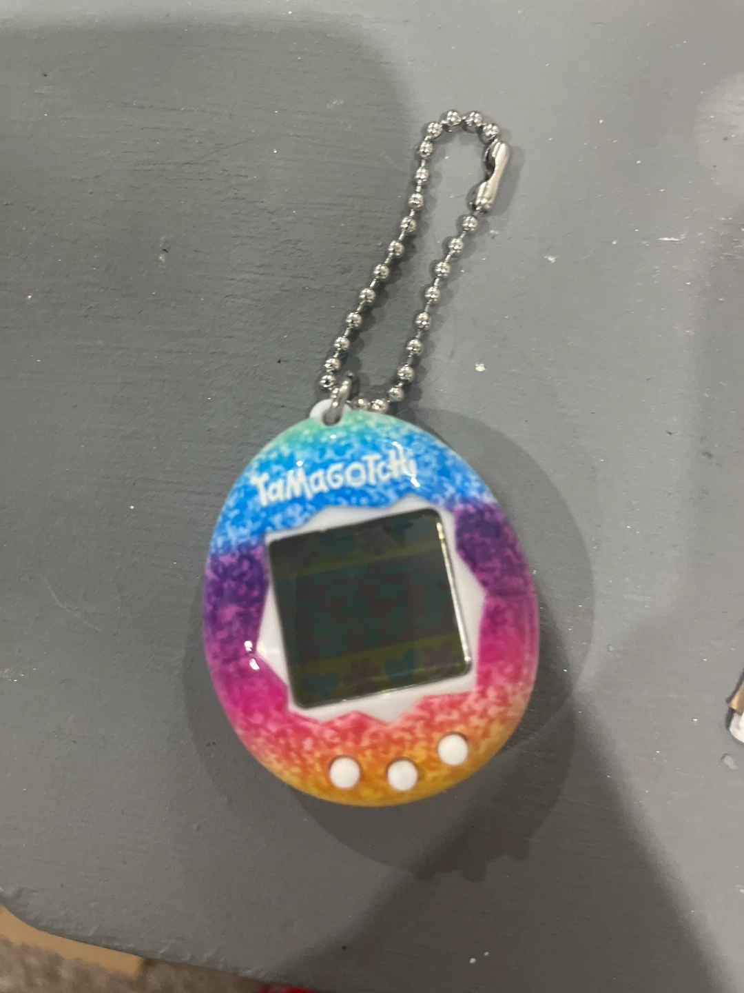 Selling a Tamagotchi GEN1 in a vibrant rainbow colour! Comes with the original instructions. Perfect for a bit of nostalgic fun!