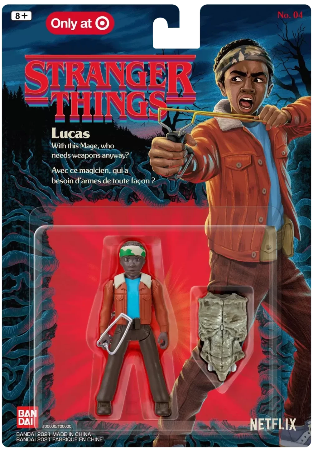 Selling a brand new, BANDAI in-box Stranger Things Lucas action figure! Number 4 in series. This is part of a series where you collect all 5 figures to build the Demogorgon. Perfect for any Stranger Things fan or collector!